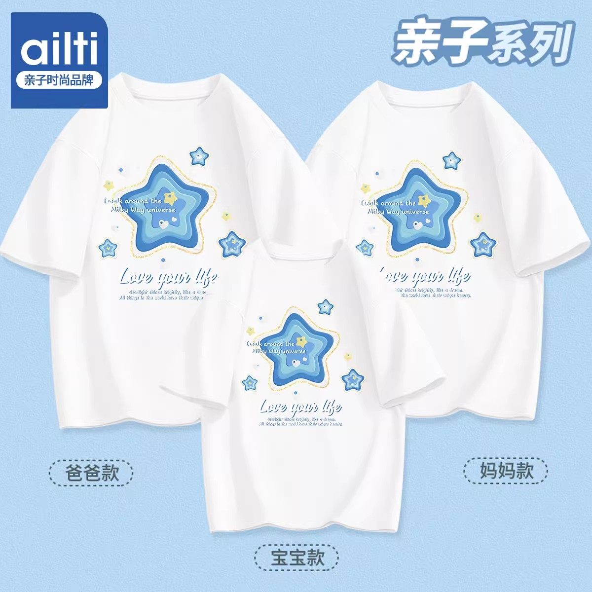 2025新款高端亲子装一家三口夏季纯棉白色短袖t恤母女多巴胺夏装