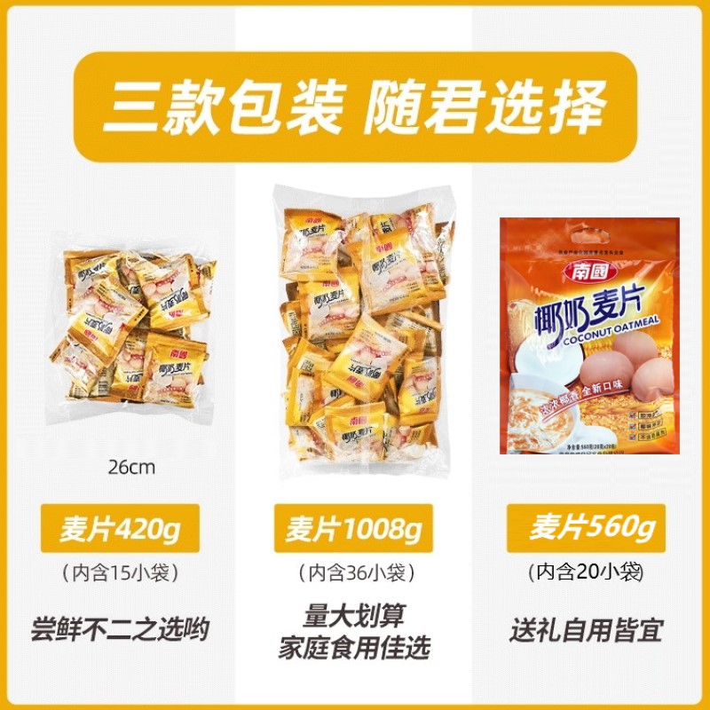 南国椰奶麦片营养早餐食品560g袋装代餐即食麦片冲泡冲饮海南特产