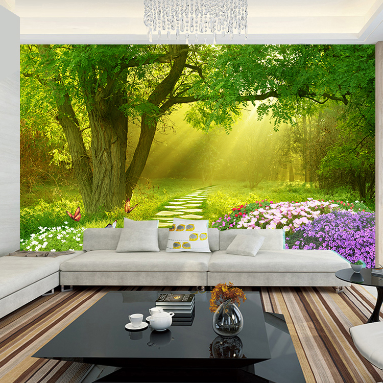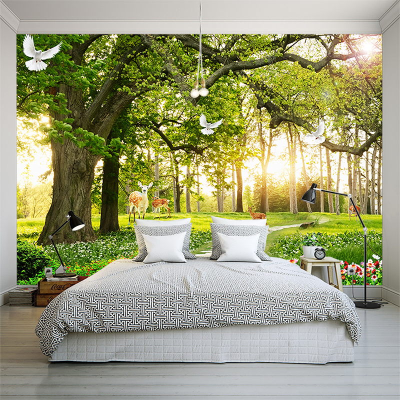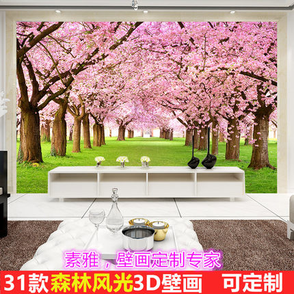 3d立体自粘背景墙贴画风景山水森林客厅卧室现代简约ins风壁纸画