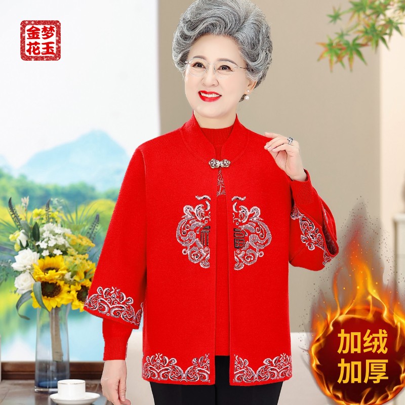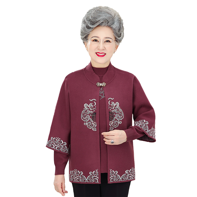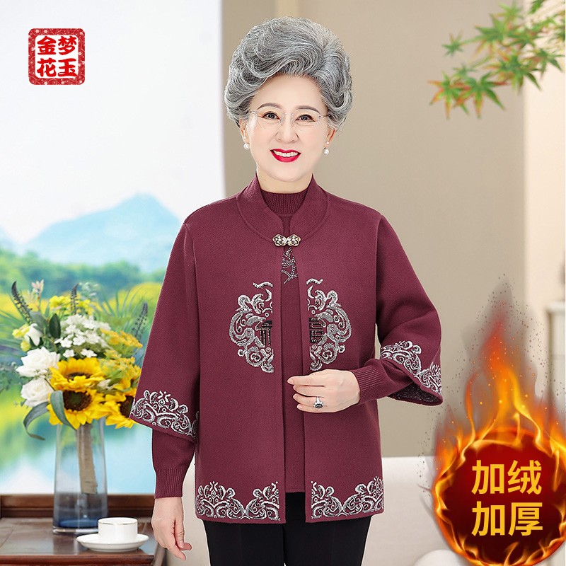 9168妈妈装加厚两件套中国风外套中老年女装宽松大码休闲绣花上衣