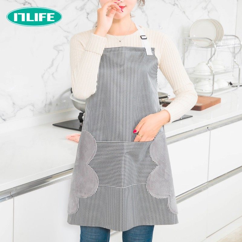 可擦手围裙可以防水防油女厨房家务做饭的家用背心式擦手巾款围布