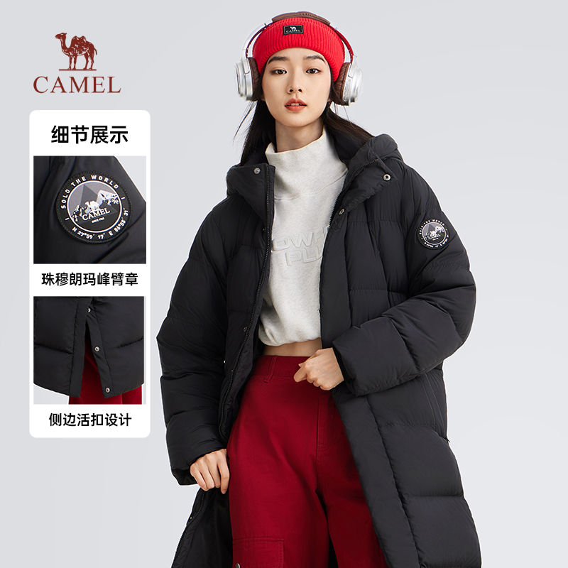 骆驼女装长款羽绒服2024冬季新款加厚保暖防风连帽防寒情侣外套男