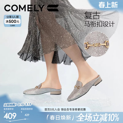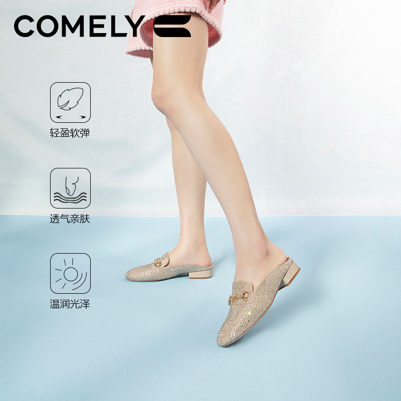 康莉平底闪钻穆勒鞋法式半拖鞋