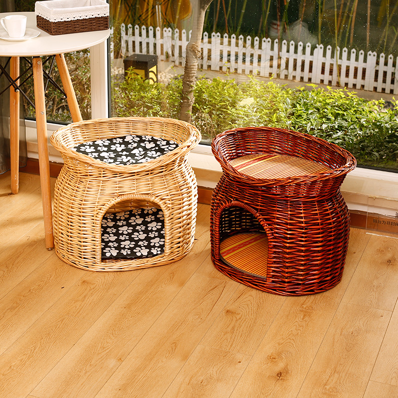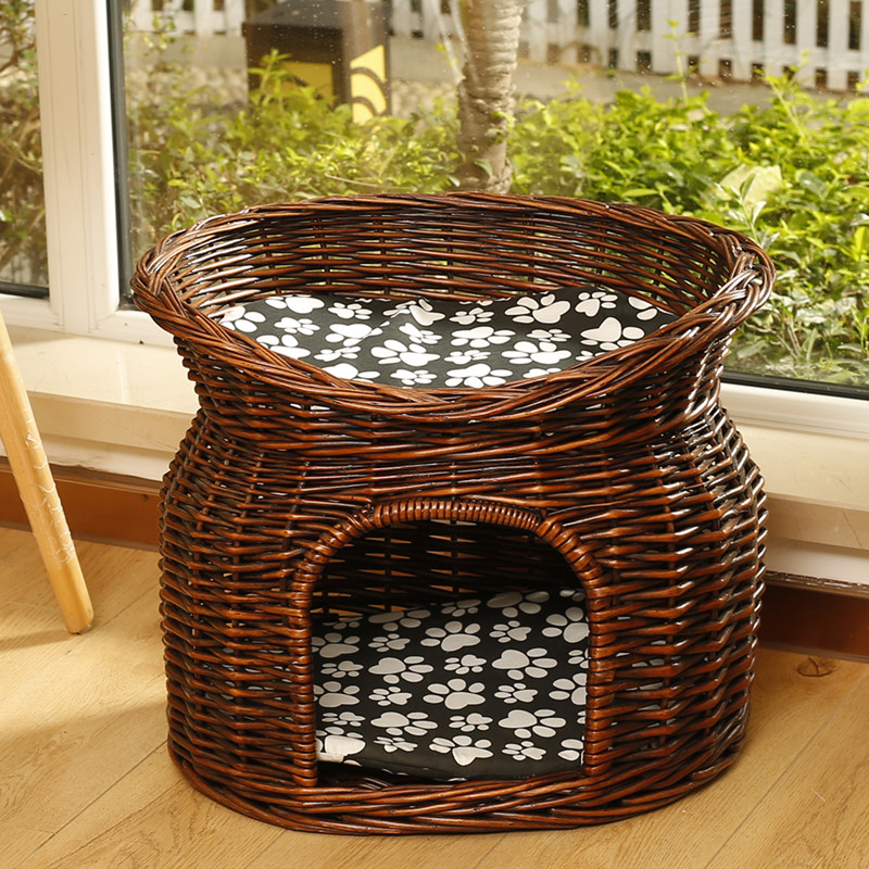 四季通用猫窝藤编夏季猫屋别墅房子双层猫笼子可拆洗猫咪用品狗窝