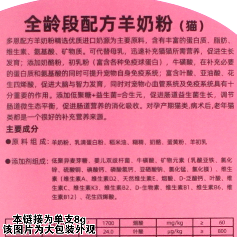 多恩哺乳期狗狗羊奶粉 幼猫咪宠物泰迪成幼犬全营养宠物羊奶粉8克