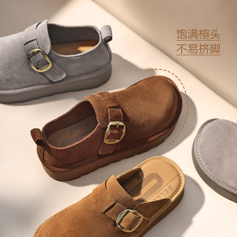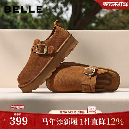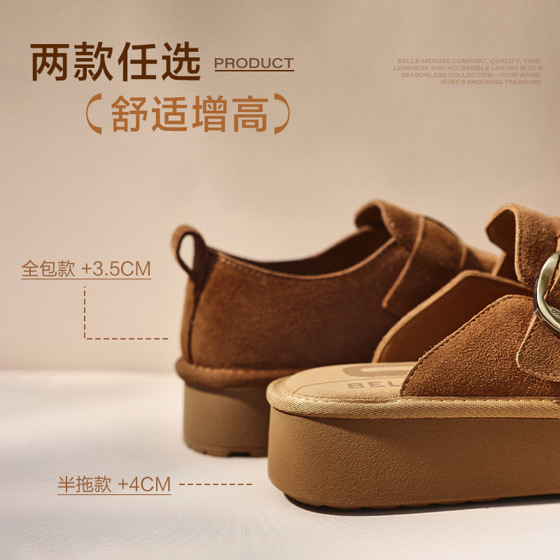 赵今麦同款百丽雪顶咖啡新款厚底增高勃肯半全包可外穿拖鞋单鞋子