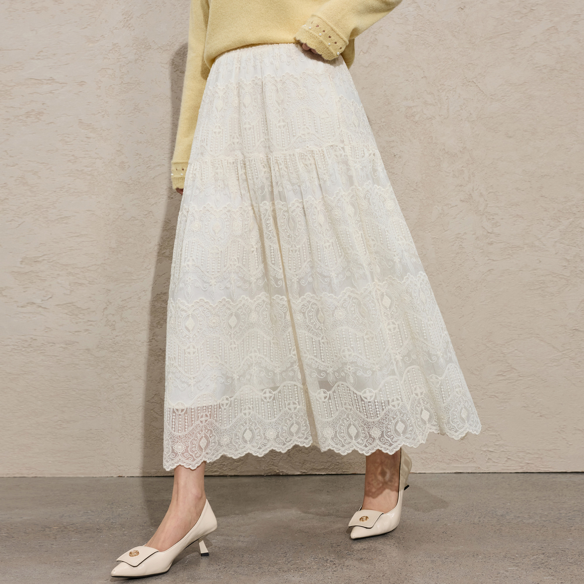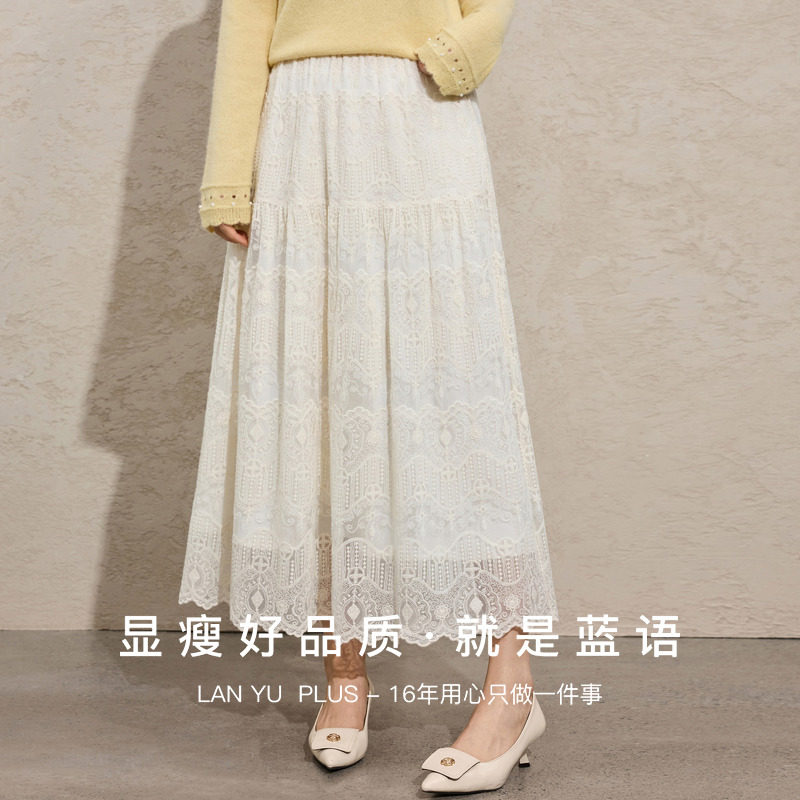 【12.29春新品会员限时6折】蓝语大码超仙法式重工刺绣蕾丝半身裙