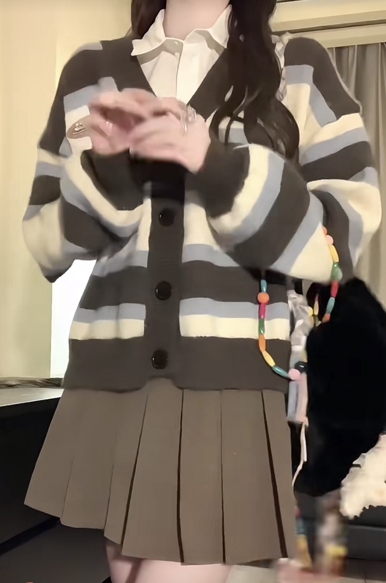 秋季盐系穿搭一整套活泼减龄小个子炸街学院风毛衣裙子两件套装女