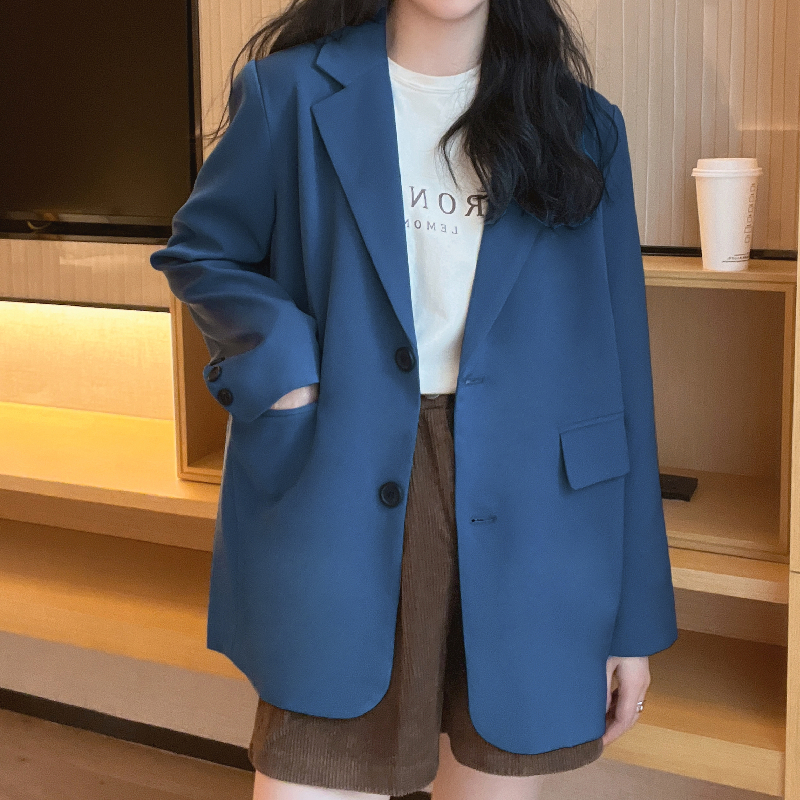高级感蓝色小个子西装外套女早春秋装新款韩版宽松休闲西服