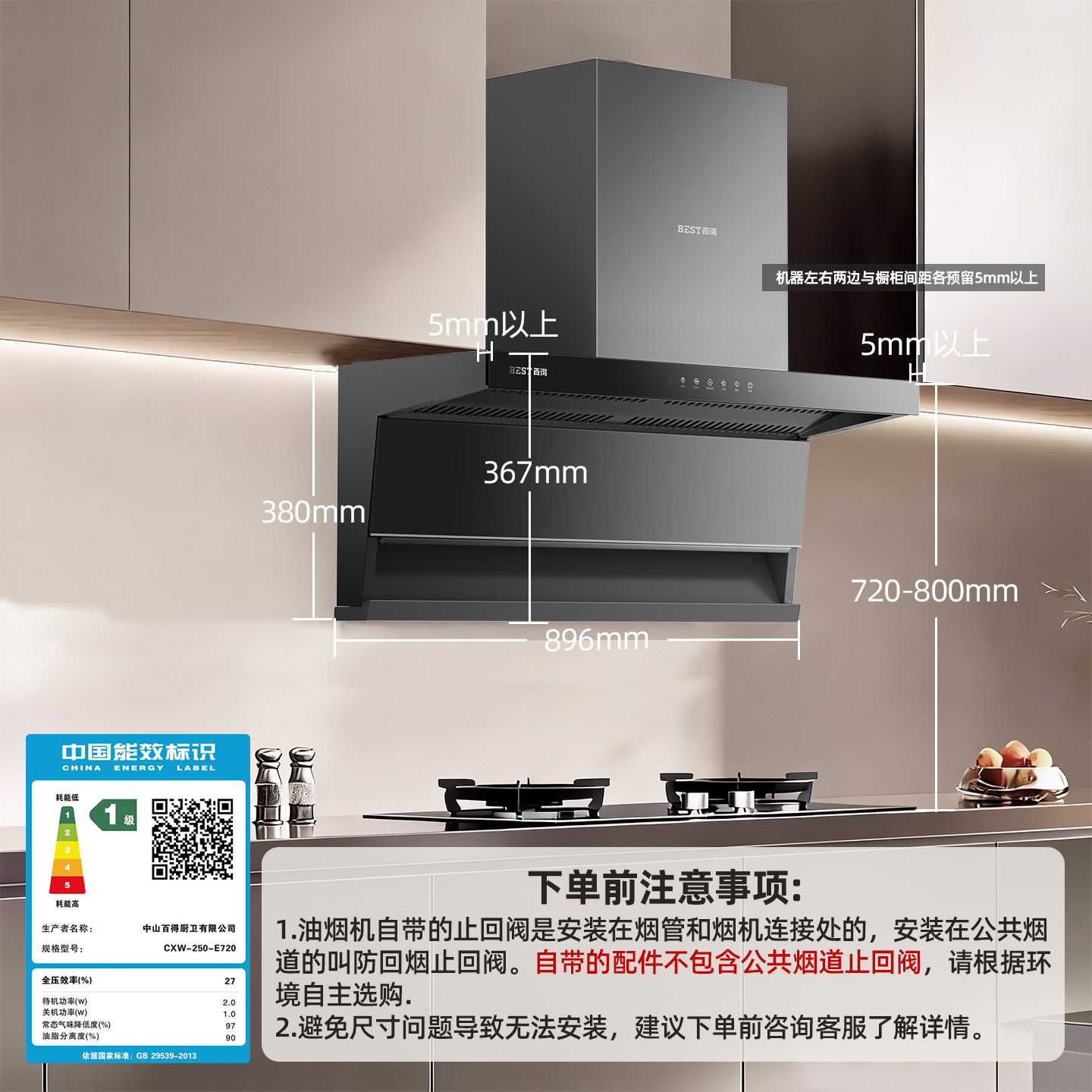 华帝百得油烟机大吸力自清洗顶侧双吸630S/636七字型静音抽油烟机