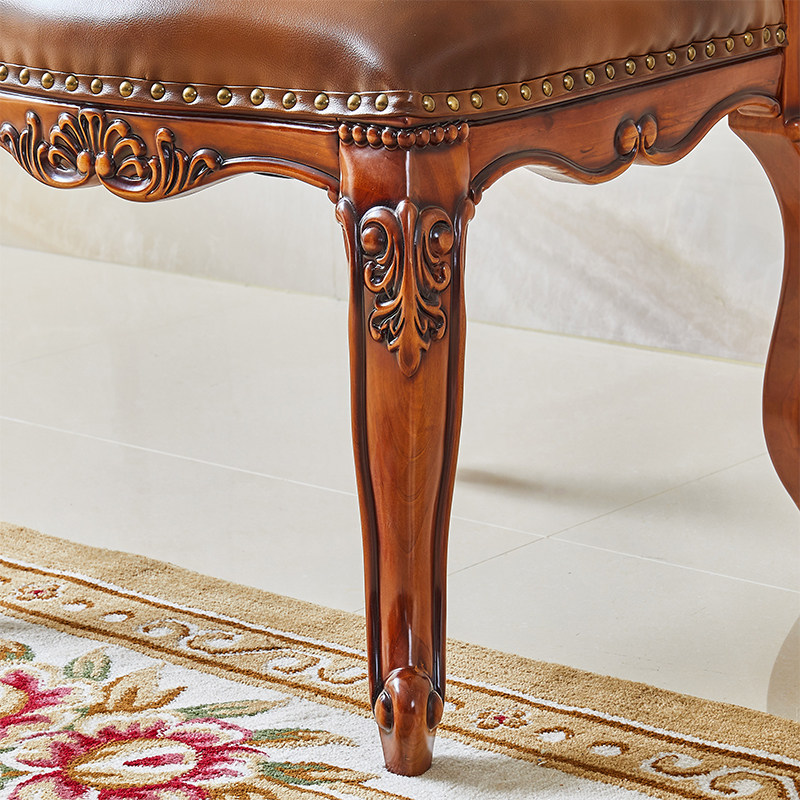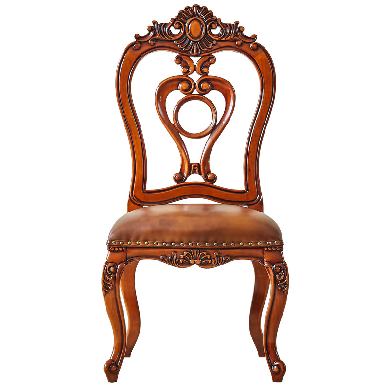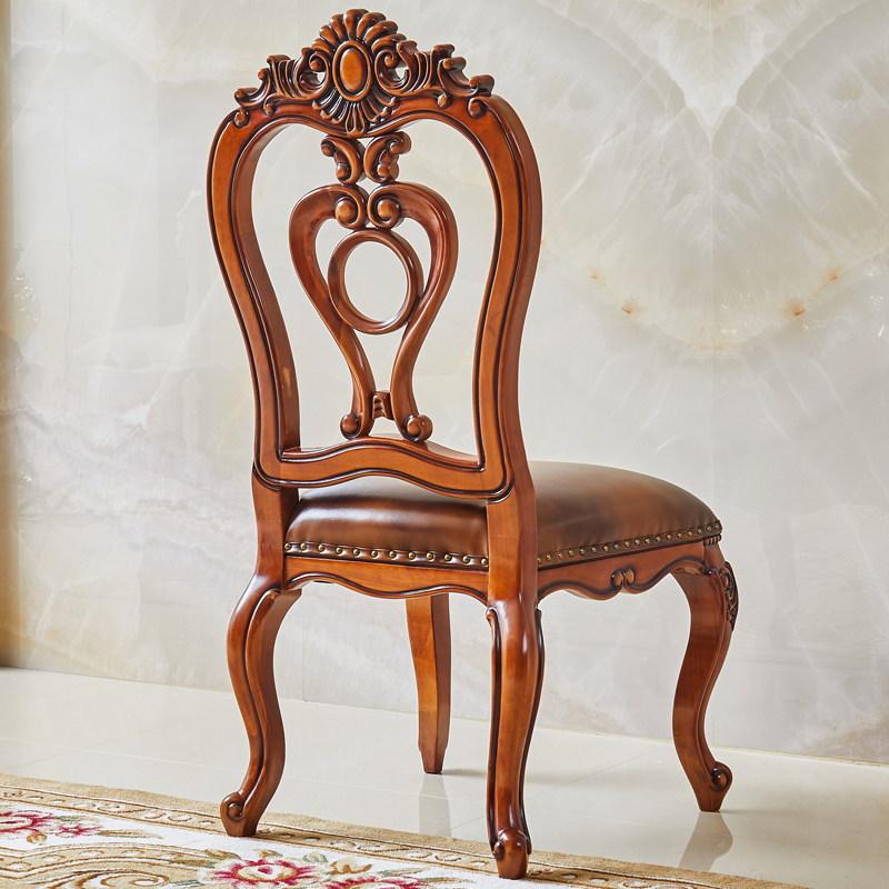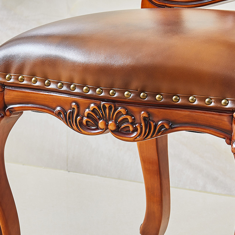 欧式乡村餐椅 美式别墅餐厅高档复古家用实木靠背椅子真皮餐桌椅