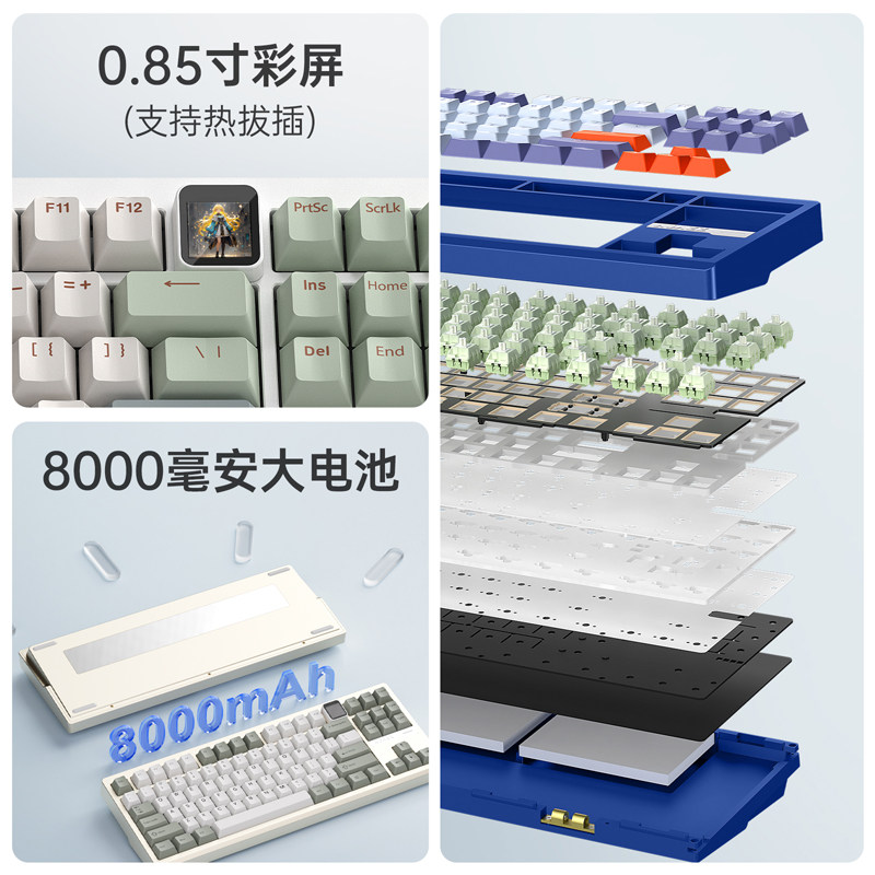 黑爵QS87机械键盘键客制化无线蓝牙三模RGB碰珠铝坨坨烈焰红轴V2