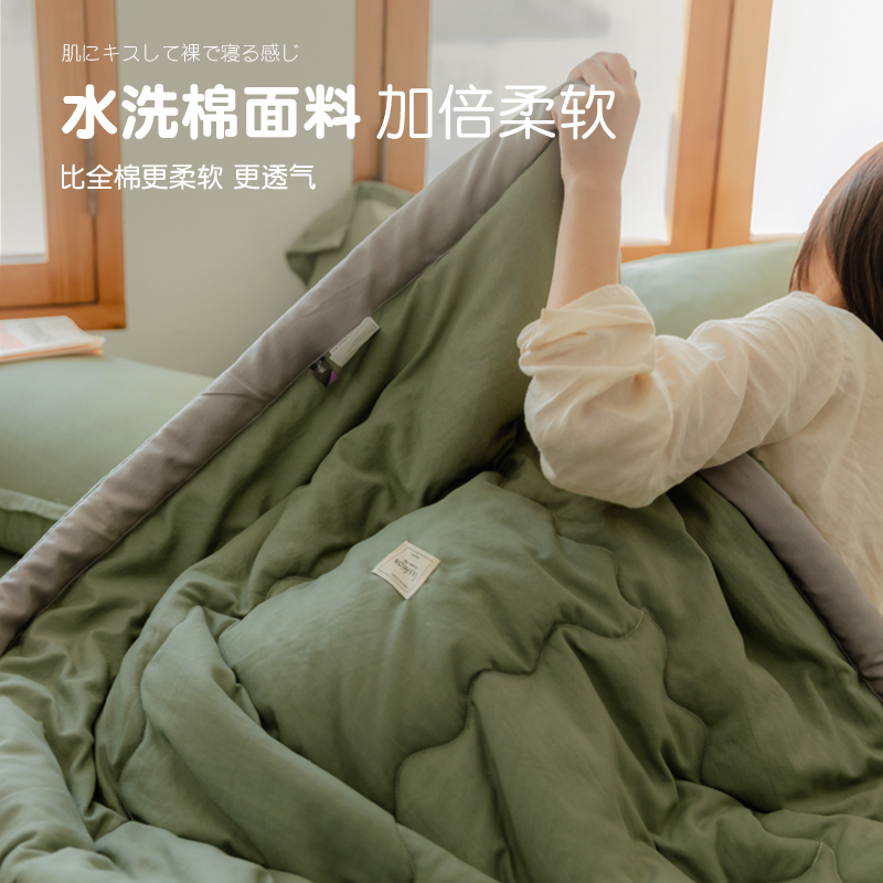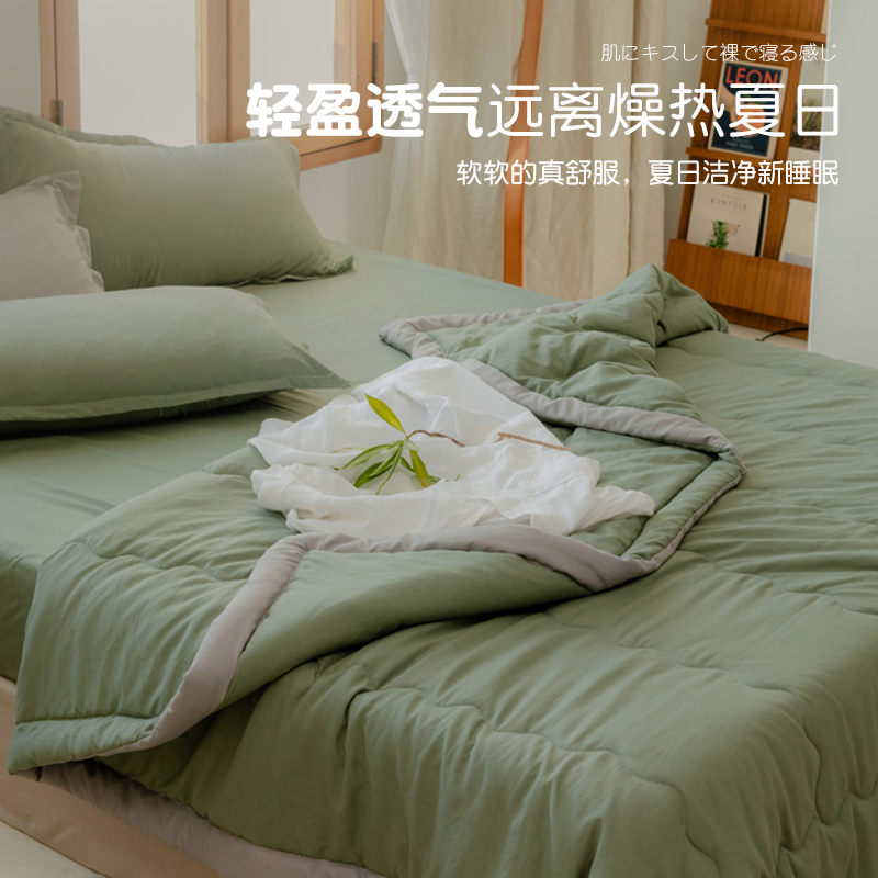 空调夏凉被子四件套夏季简约纯色春秋被芯水洗棉夏被单双人可机洗