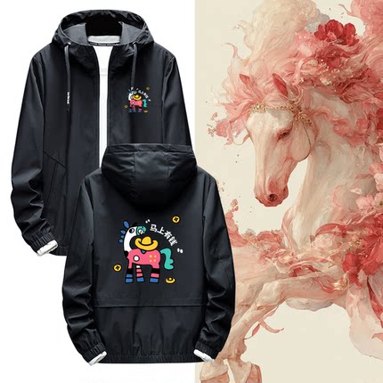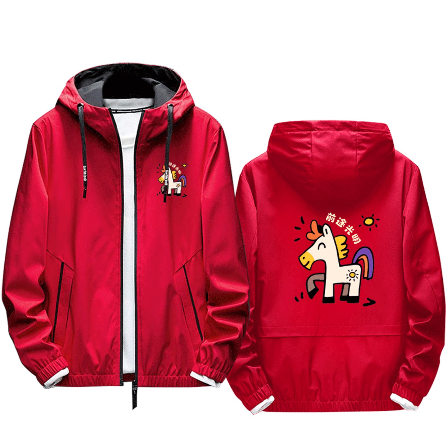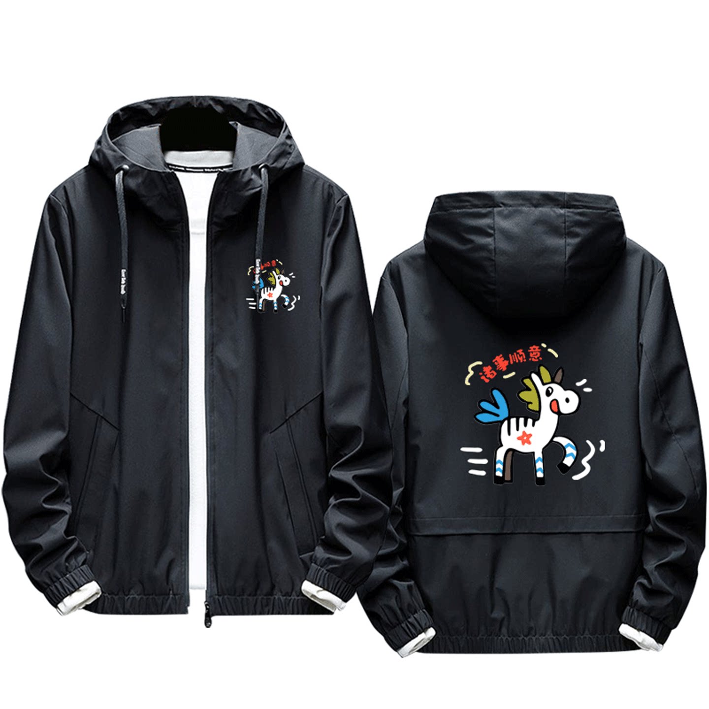 2026马年新年马上有钱卡通情侣定制连帽夹克外套属相印花男女秋冬