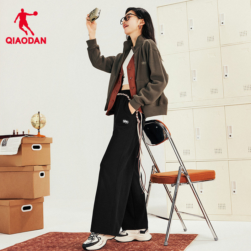 商场同款乔丹针织阔腿长裤女生2026新款阿美咔叽休闲宽松舒适直筒