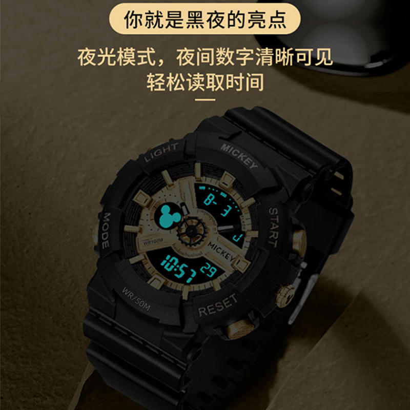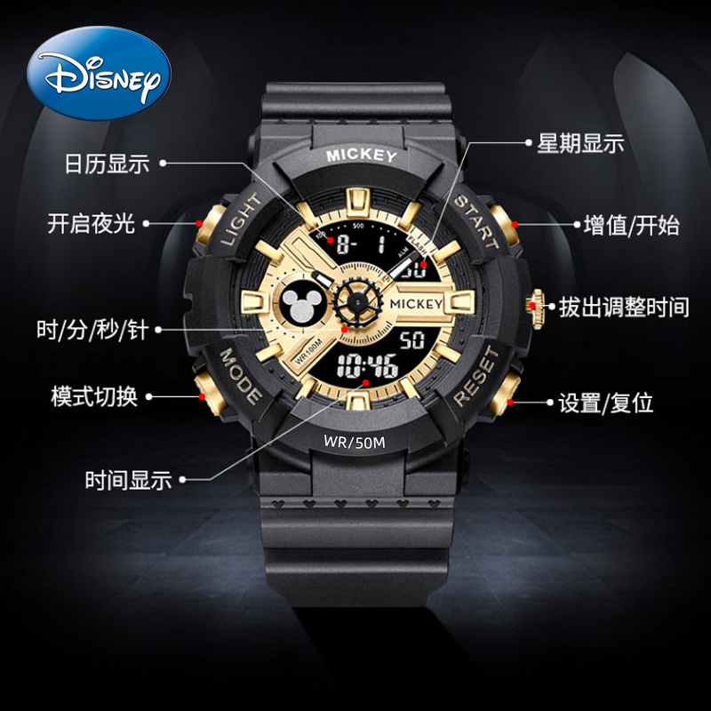 迪士尼手表男潮流防水2025运动机械电子表初中高中学生女青少年潮