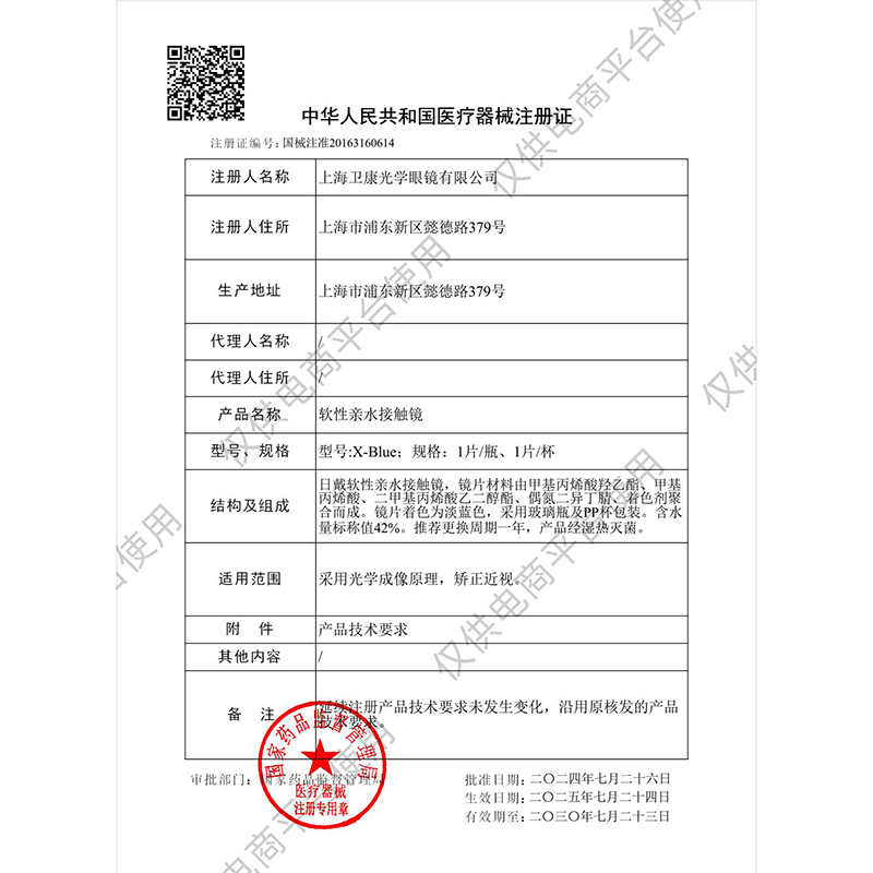 卫康x-blue隐形近视眼镜年抛2片高度数小直径透明镜片旗舰店正品