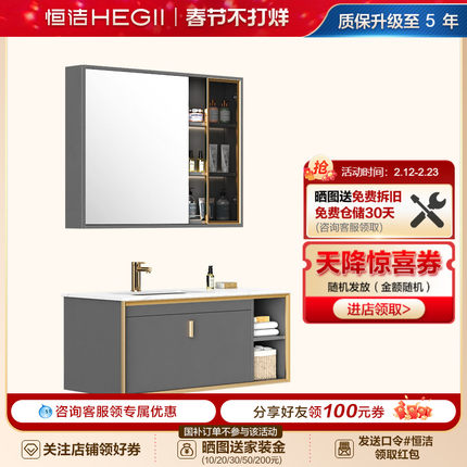 [搭配购]恒洁岩板浴室柜组合卫生间美妆柜镜柜收纳洗脸浴室柜6155