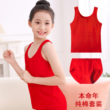 女童本命年背心儿童大红色内裤中大童发育期12岁女孩纯棉内衣套装