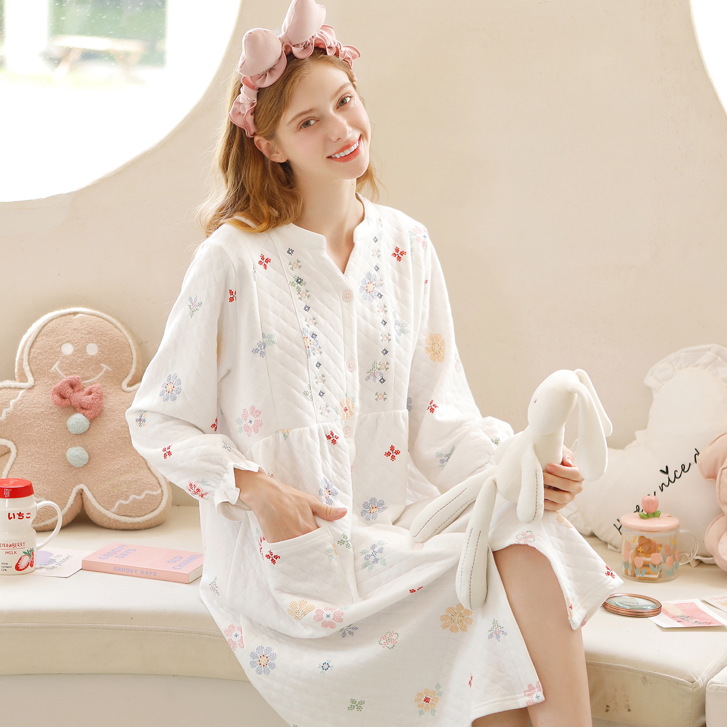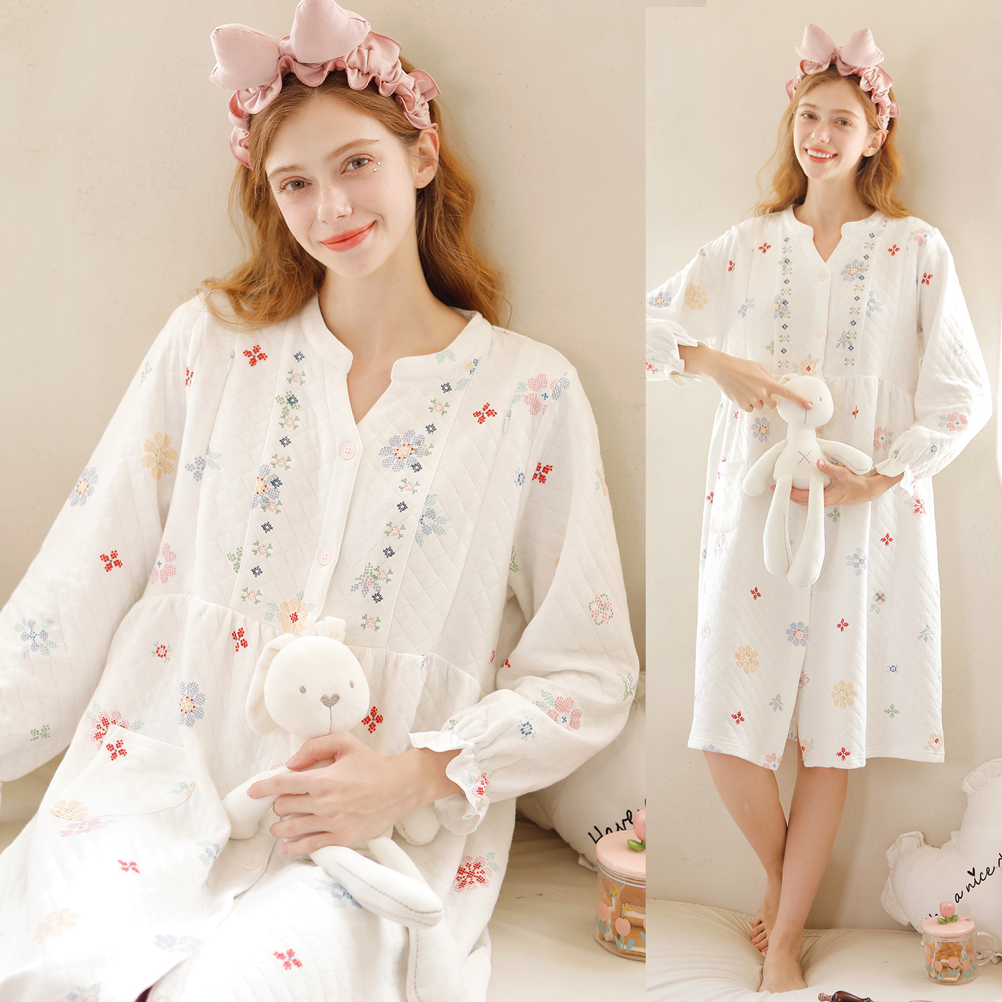 家时光月子服秋冬季加厚空气棉孕妇哺乳睡衣产妇厚款可外穿家居服