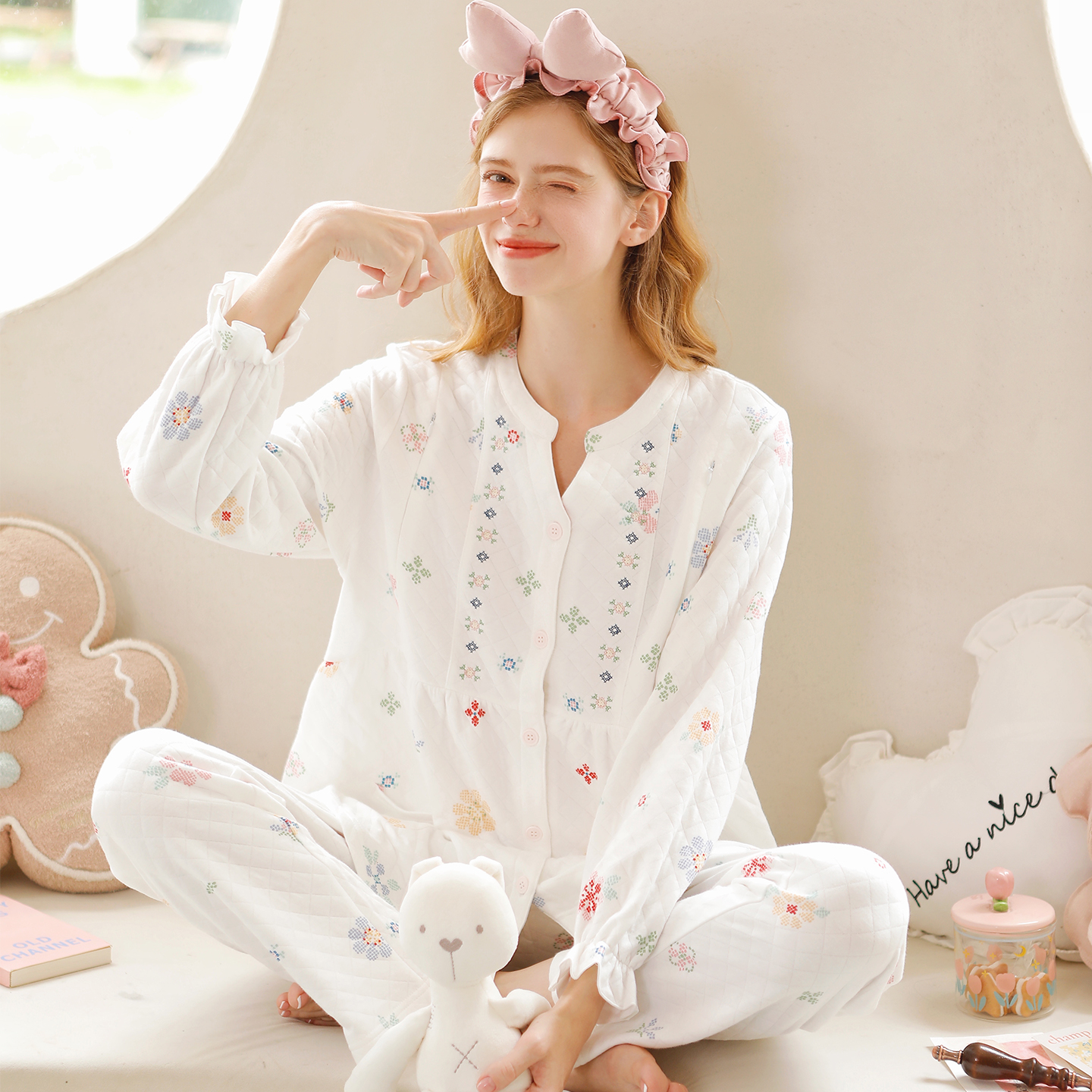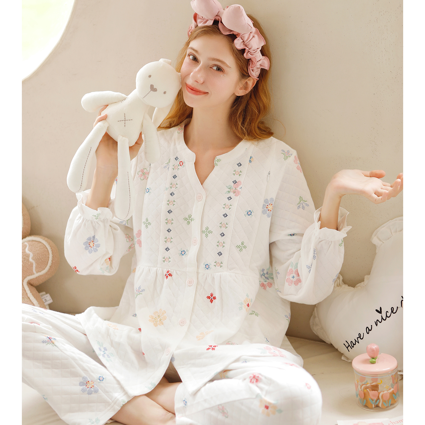 家の时光空气棉月子睡衣待产家居