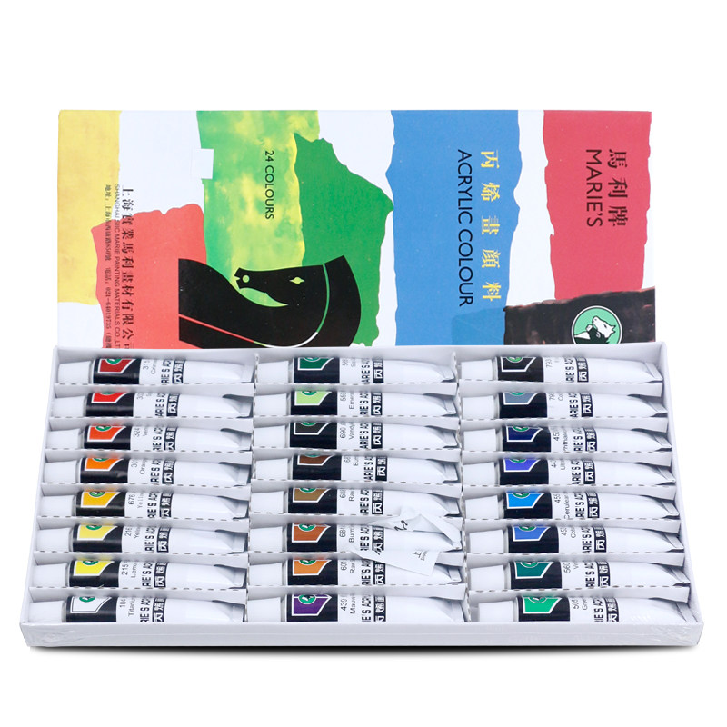 马利丙烯颜料套装 初学者手绘24色套装18 36色丙烯画炳稀颜料小12ML石头画球鞋diyT恤防水儿童涂鸦纺织品颜料