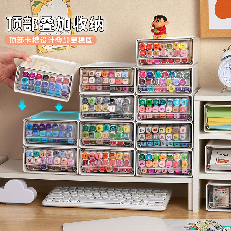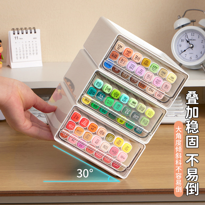 马克笔笔筒桌面文具抽屉式放水彩铅笔桶儿童蜡笔架美术画笔收纳盒