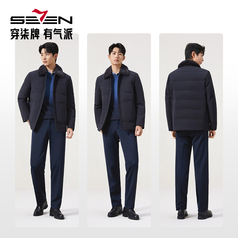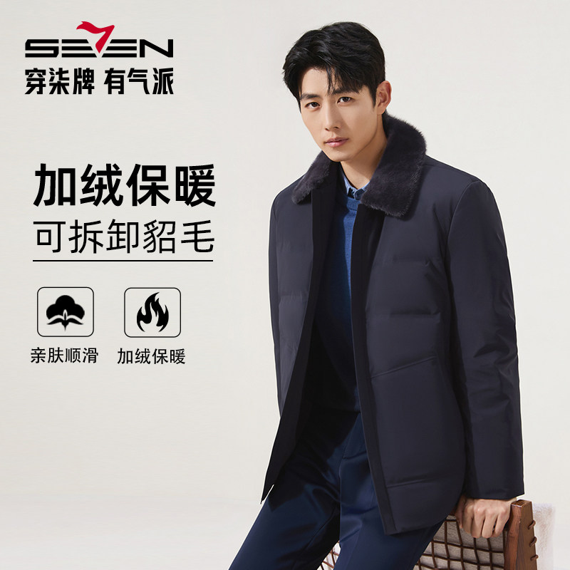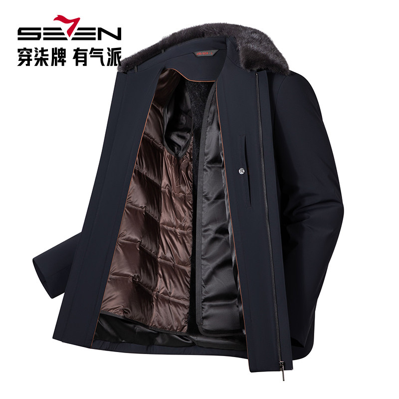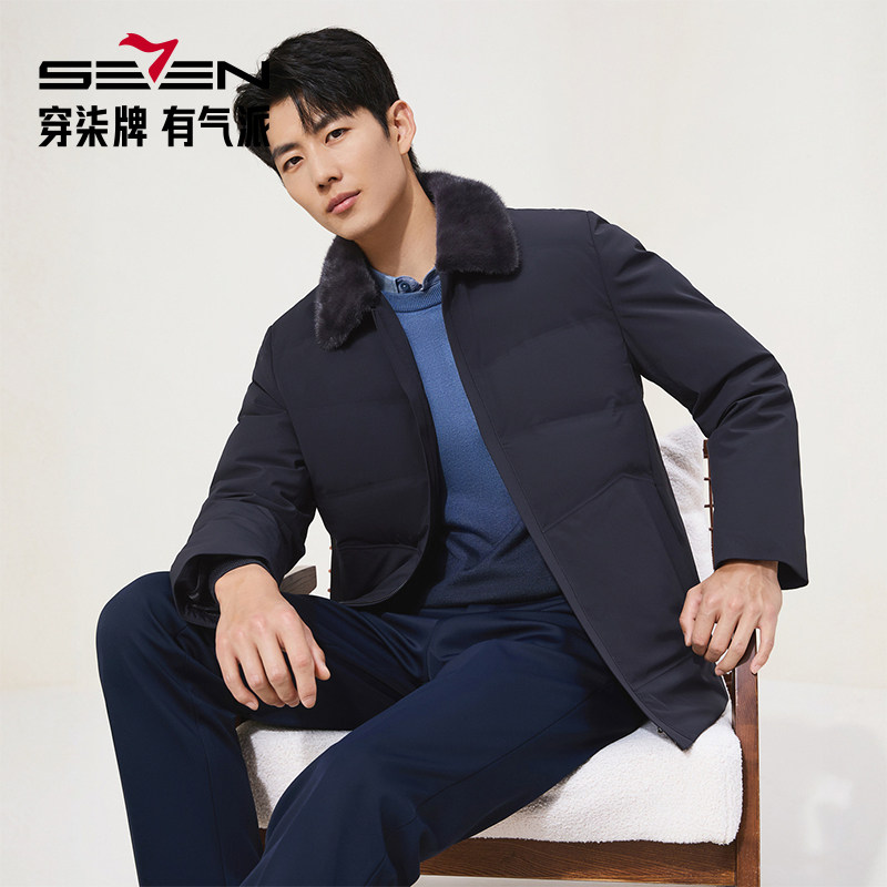 柒牌水貂毛领2025冬季新款羽绒服男商务休闲时尚保暖羽绒服