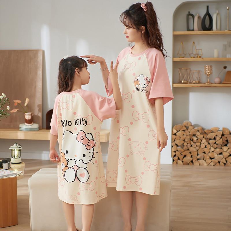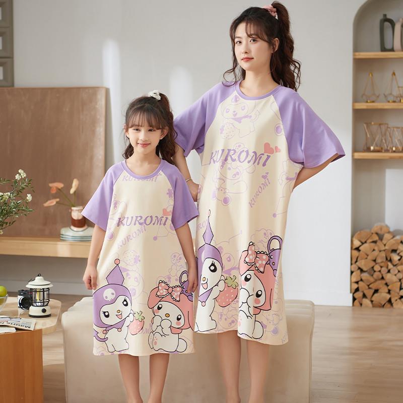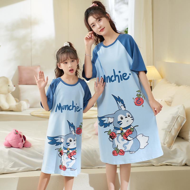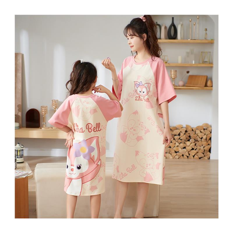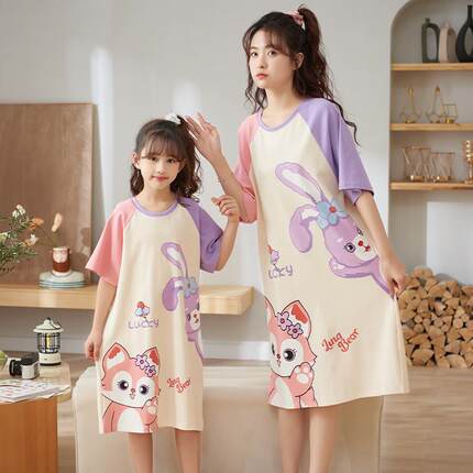 夏季儿童纯棉可爱星黛露女童睡裙短袖亲子母女睡衣亲肤透气家居服