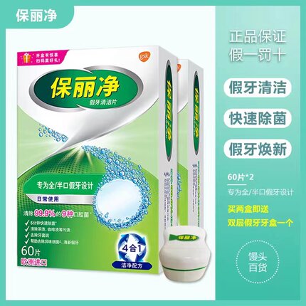 保丽净假牙清洁片60片装2盒120片深层次护理假牙正畸保持隐形牙套