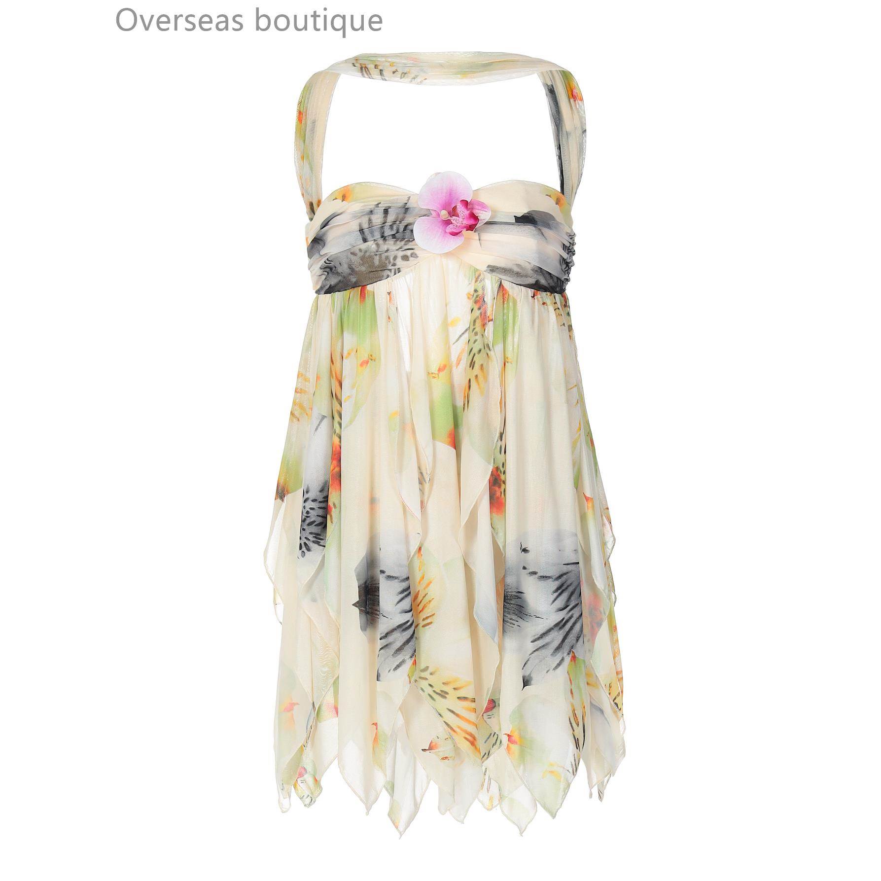 Hanging neck mesh spliced top挂脖露背网纱拼接花朵中长上衣