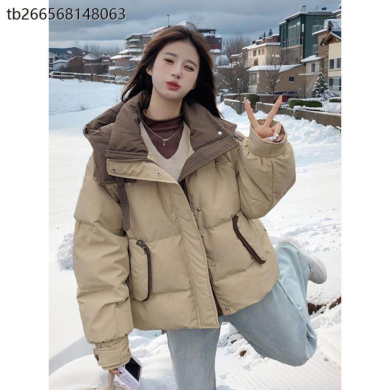 300斤大码女装胖mm韩系设计感棉服女新款拼接卡其色加厚冬装外套