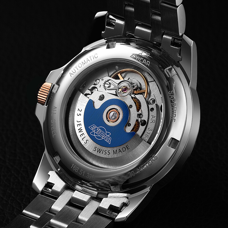英纳格(ENICAR) 蓝牌系列日历显示自动机械男表