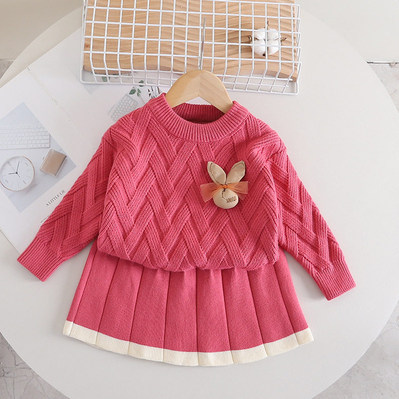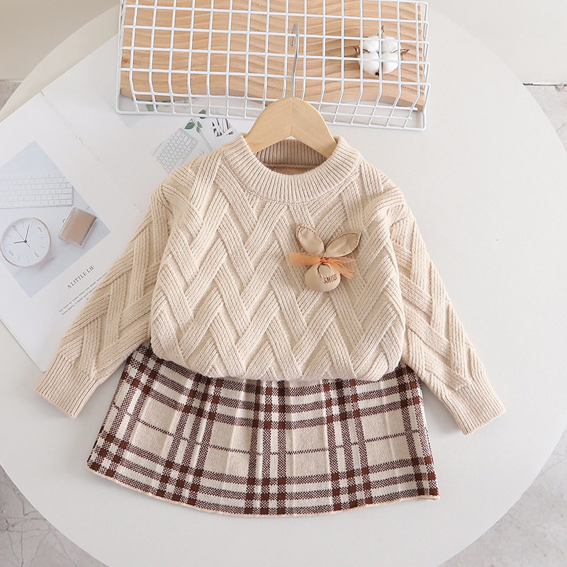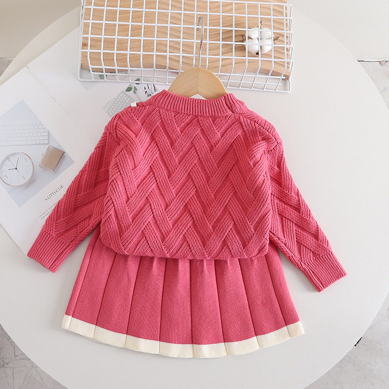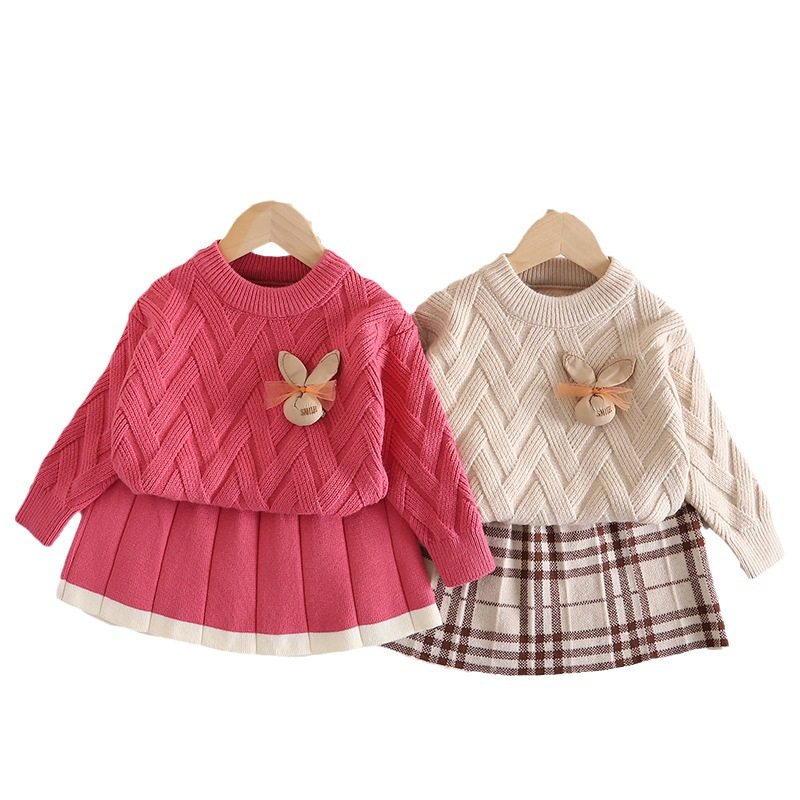 女童洋派针织套装2023秋冬新款儿童毛衣套裙两件套宝宝卡通毛线衣