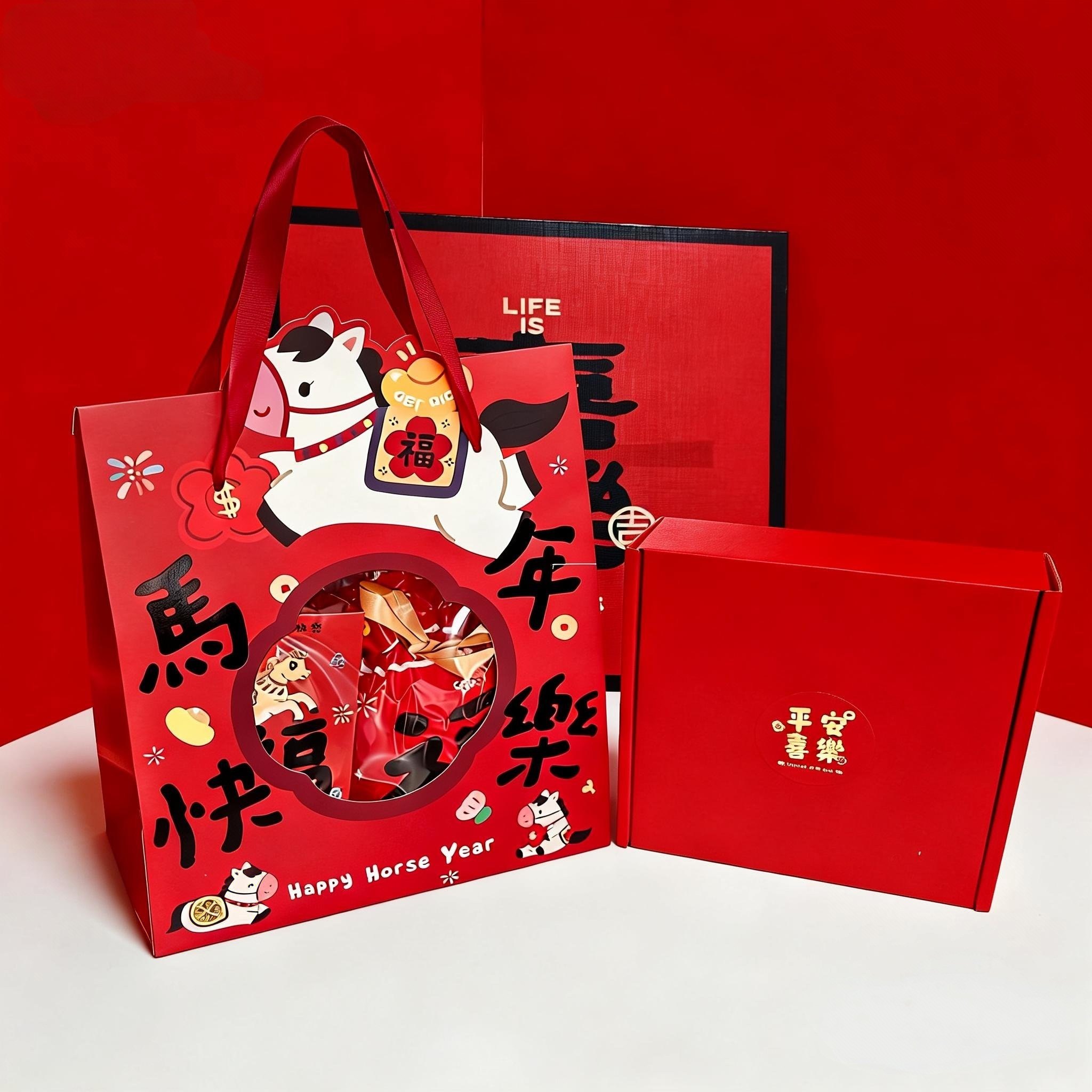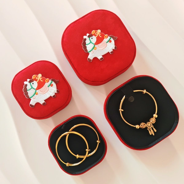26新款马生肖宝宝生日百天满月黄金银镯长命锁本命年红绳手链礼盒