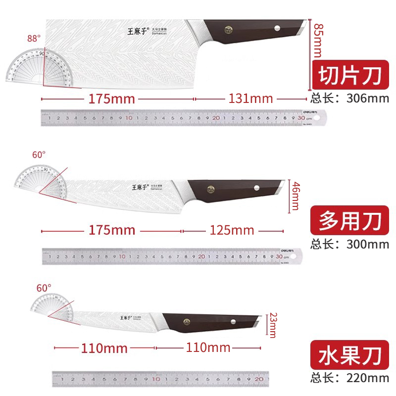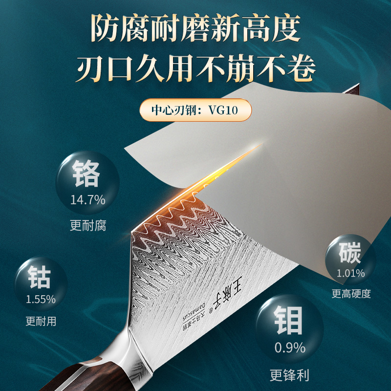 王麻子大马士革VG10菜刀家用送礼切片切肉切菜刀具正品官方旗舰店