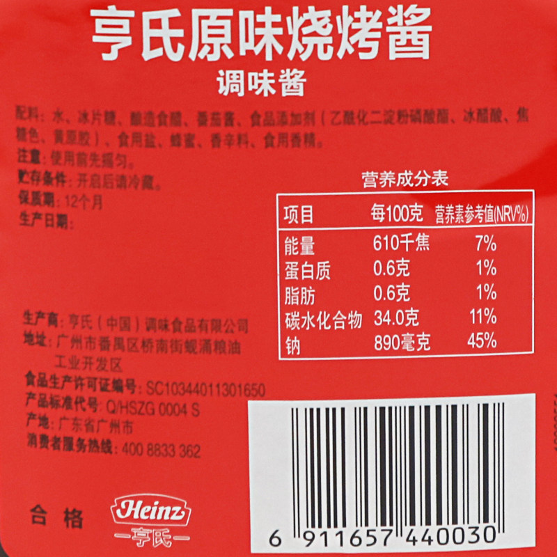亨氏BBQ烧烤酱原味600g烤肉酱