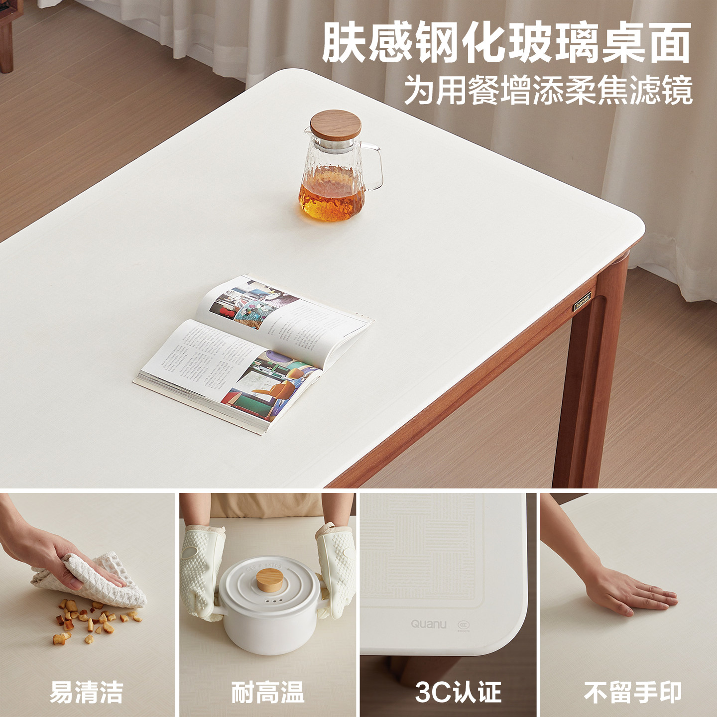 全友家居奶油风新中式玻璃餐桌