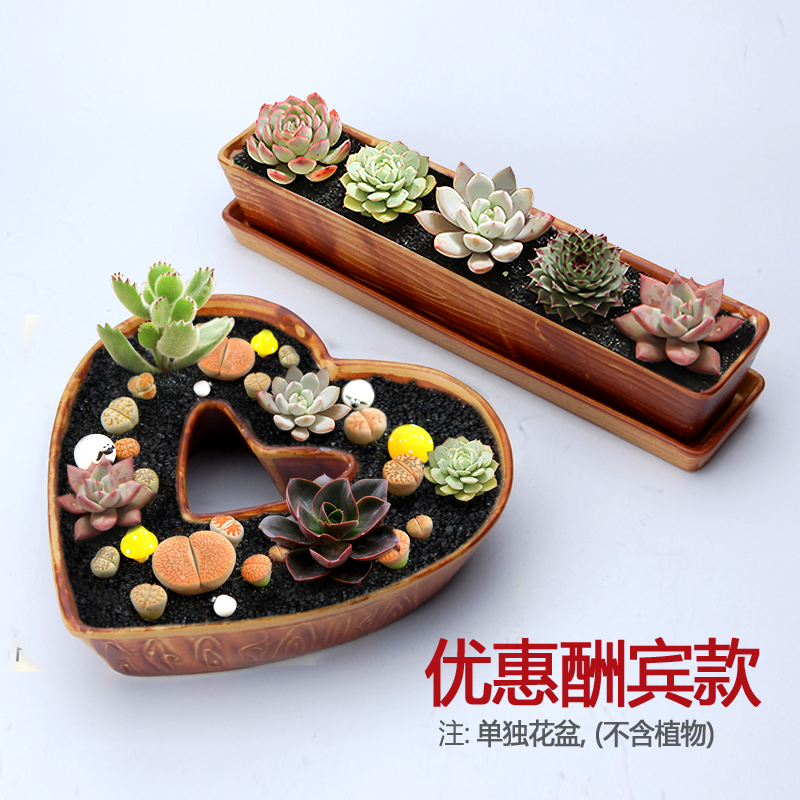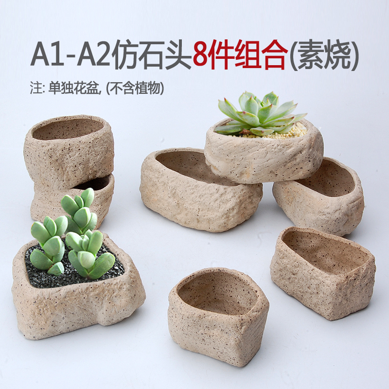 随机8个素烧多肉花盆多肉植物花盆肉肉盆陶瓷仿石头创意小花盆栽