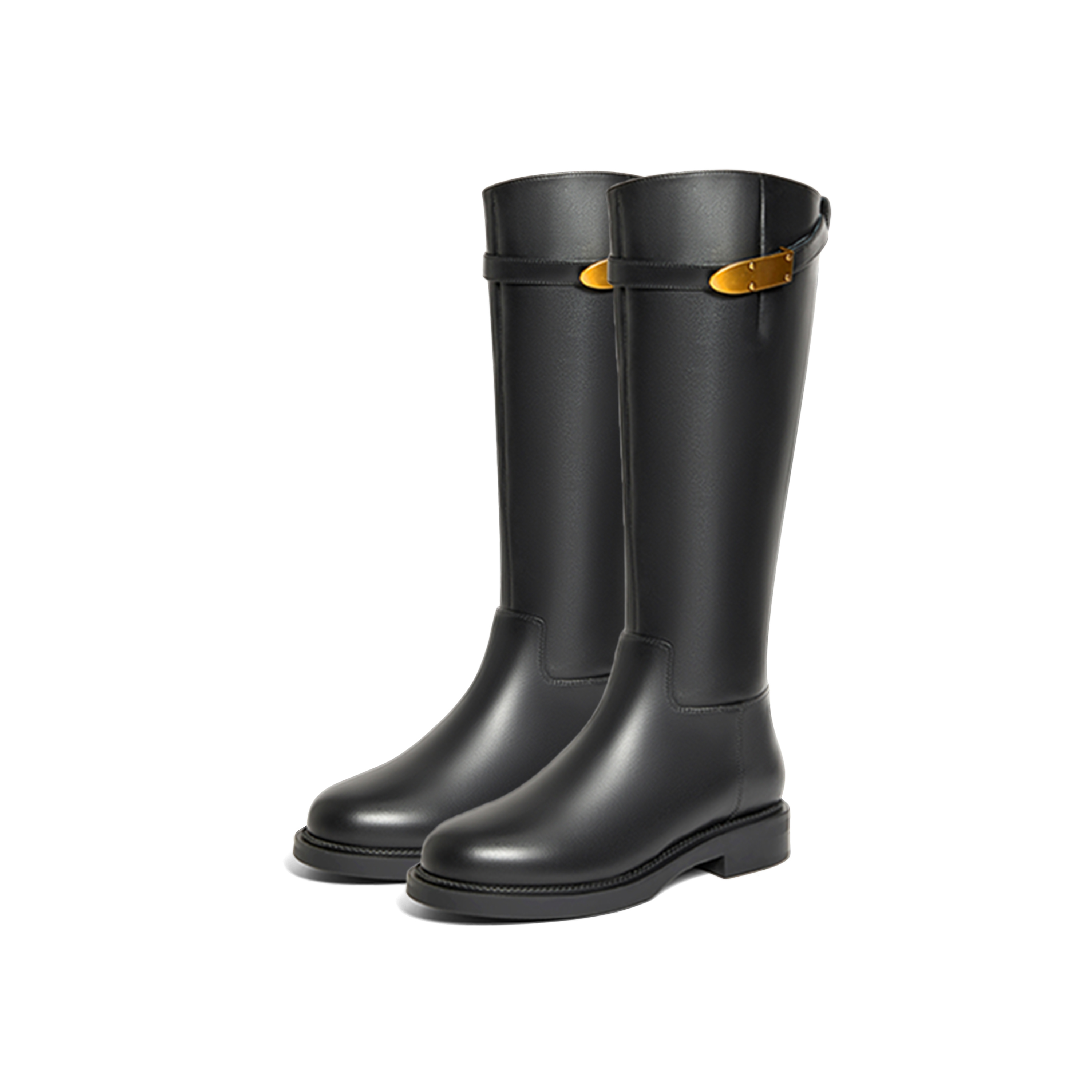 天美意潮酷厚底长靴骑士靴女时装靴高筒皮靴子冬BH791DG3