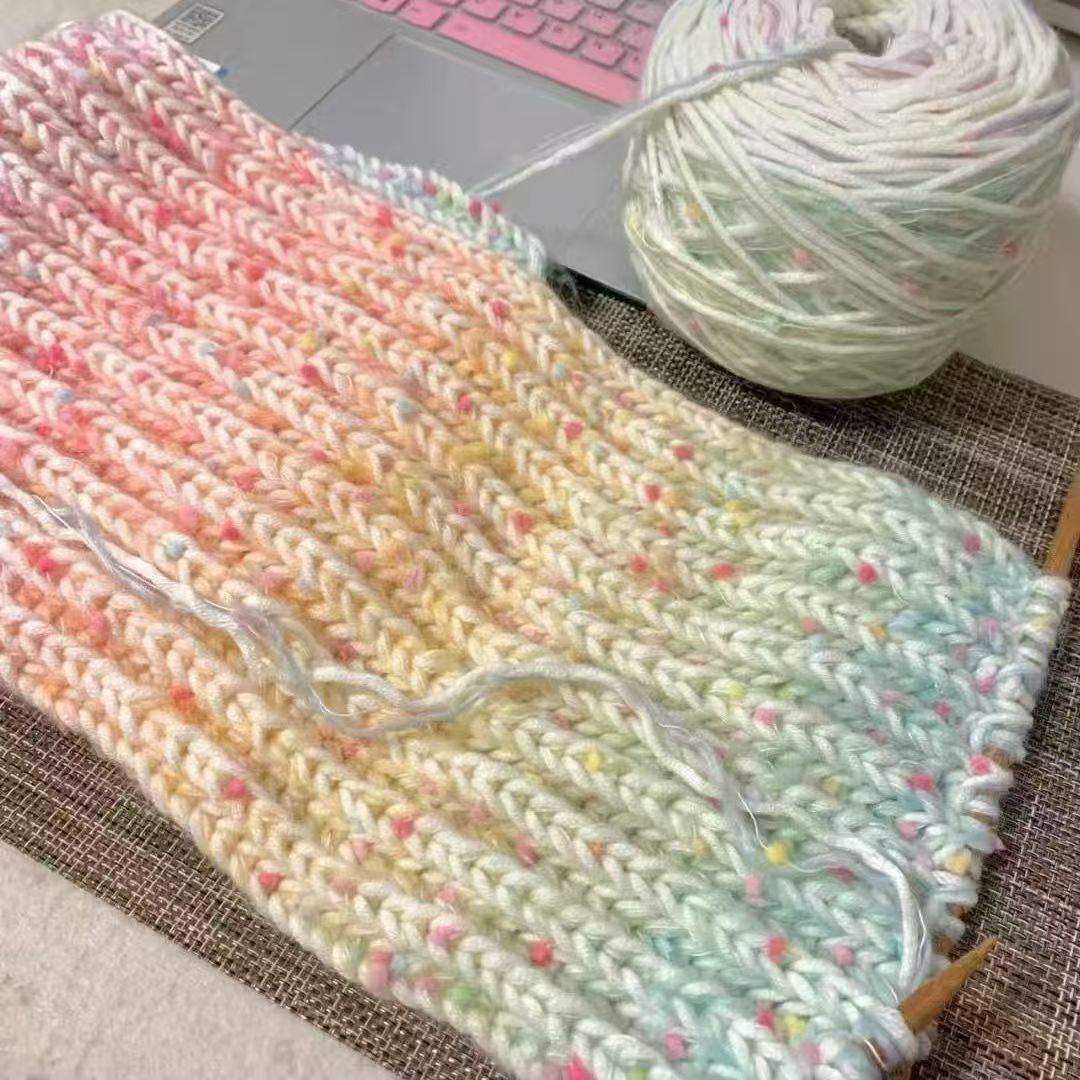 送毛线编织手工diy彩虹冰条线毛线冬季彩色女生糖男友围巾渐变粗