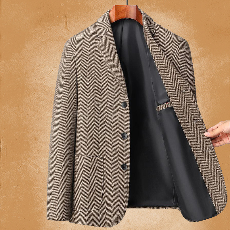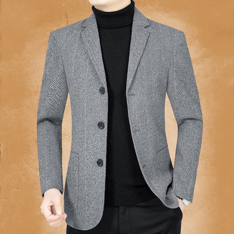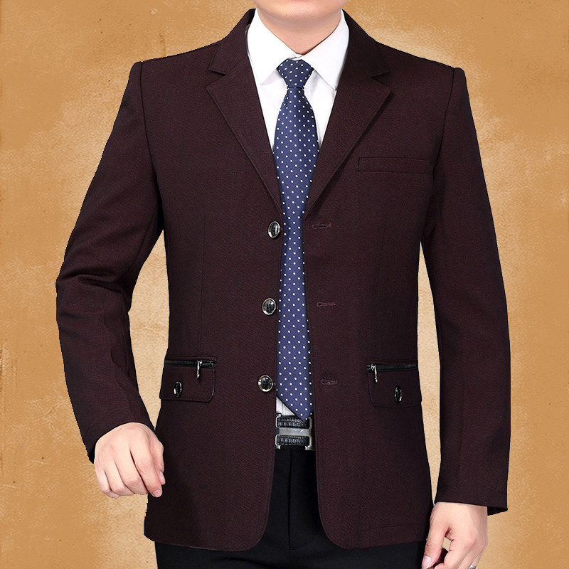 中年男士西服外套中老年男装单件便服爸爸休闲上衣三粒扣免烫西装