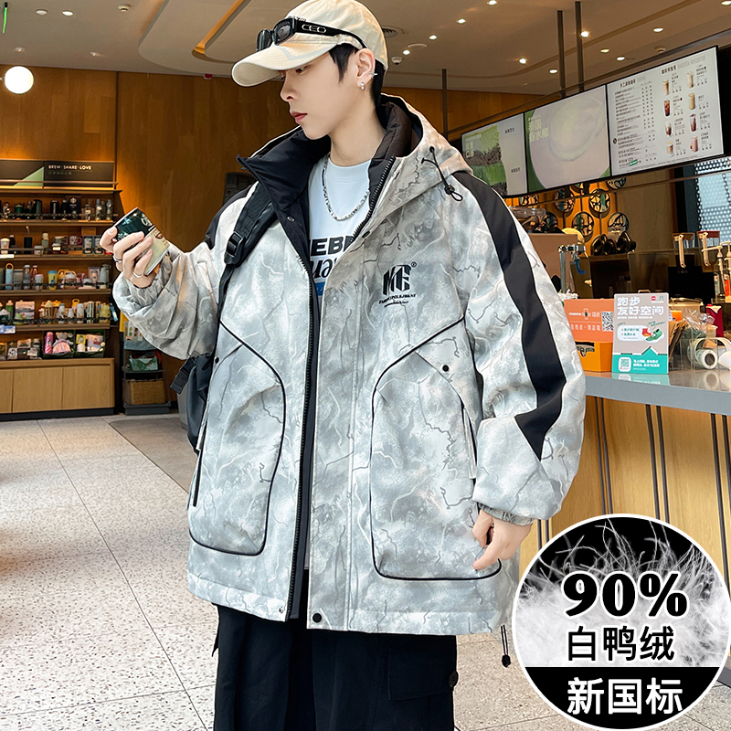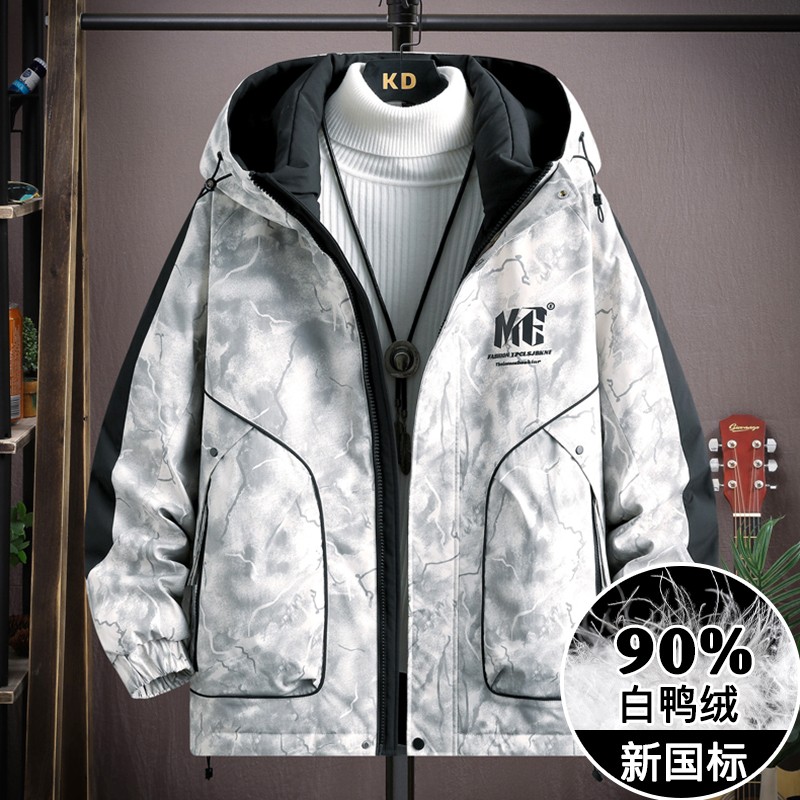 羽绒服男款冬季2025新白鸭绒外套男连帽加厚保暖青少年防寒服以純