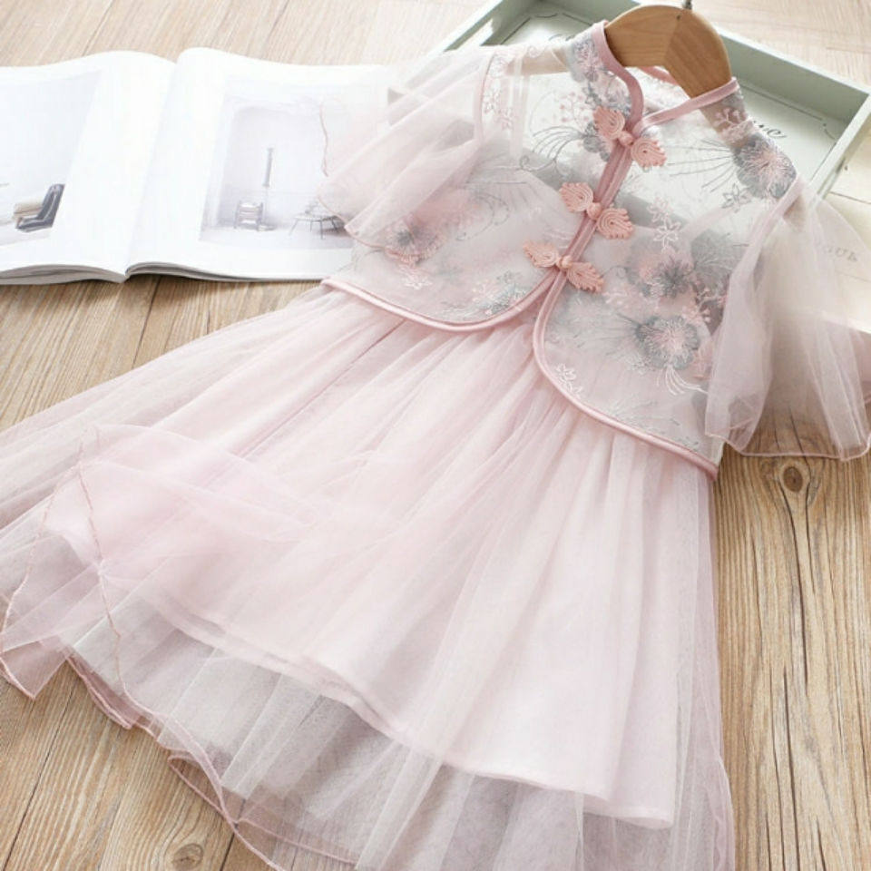 女童汉服连衣裙夏装2025新款公主裙儿童网纱裙女孩洋气中大童旗袍