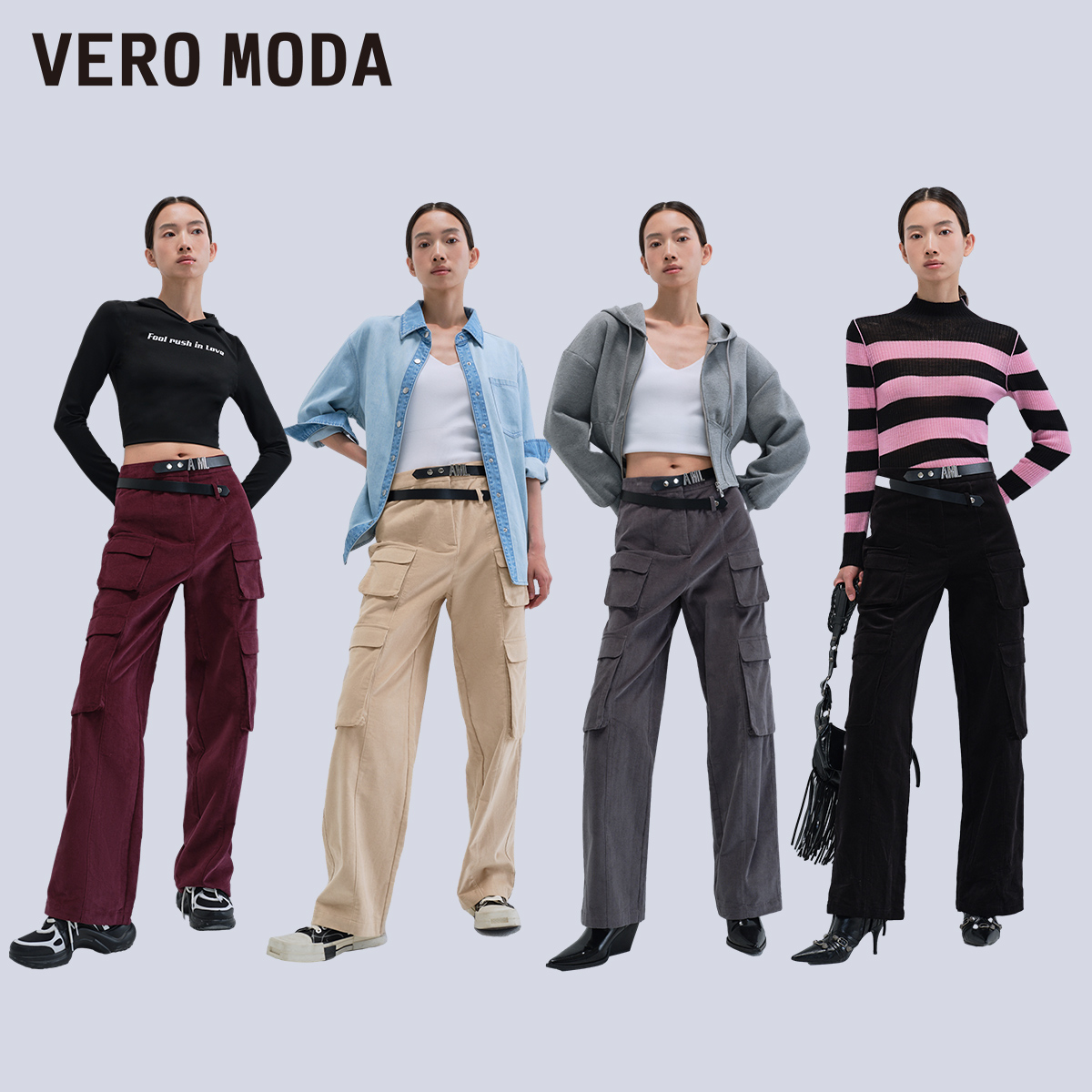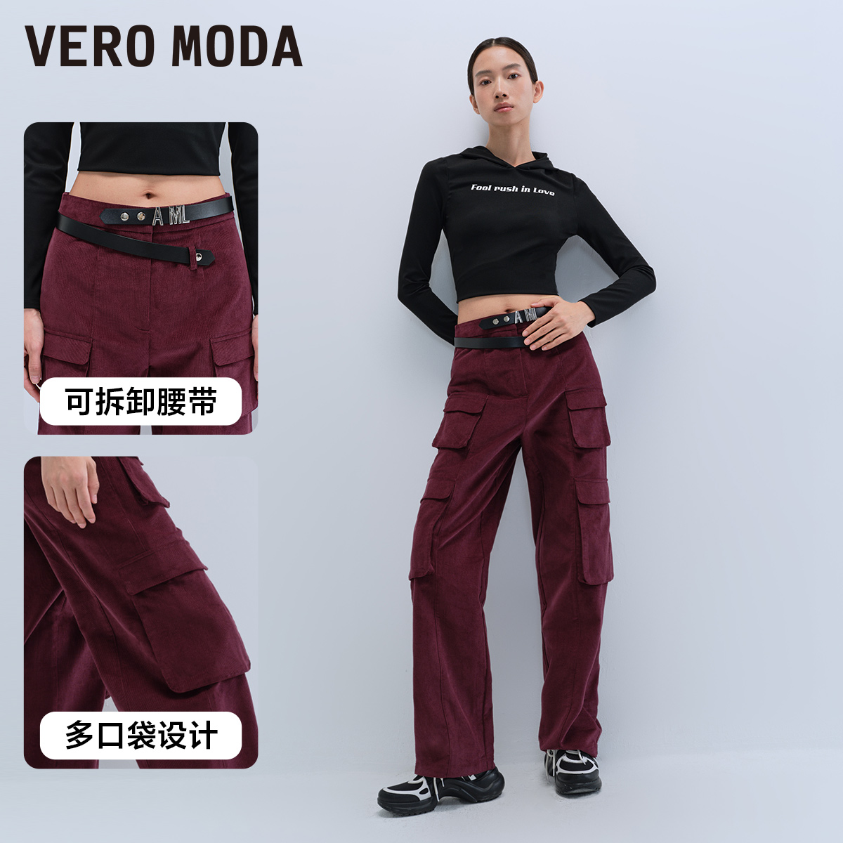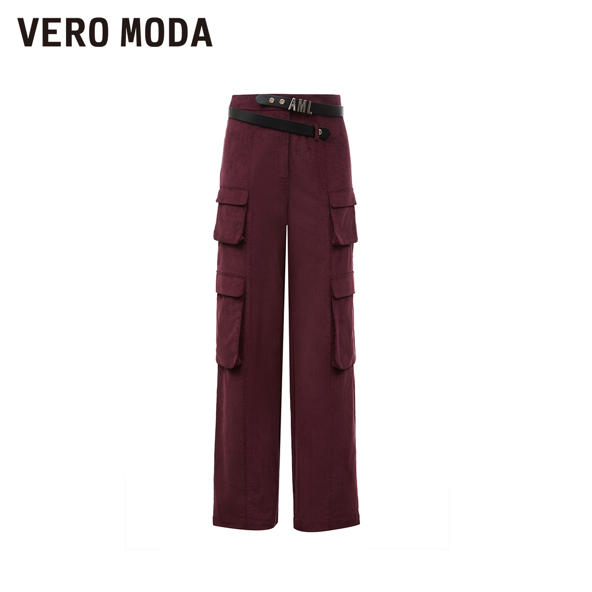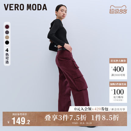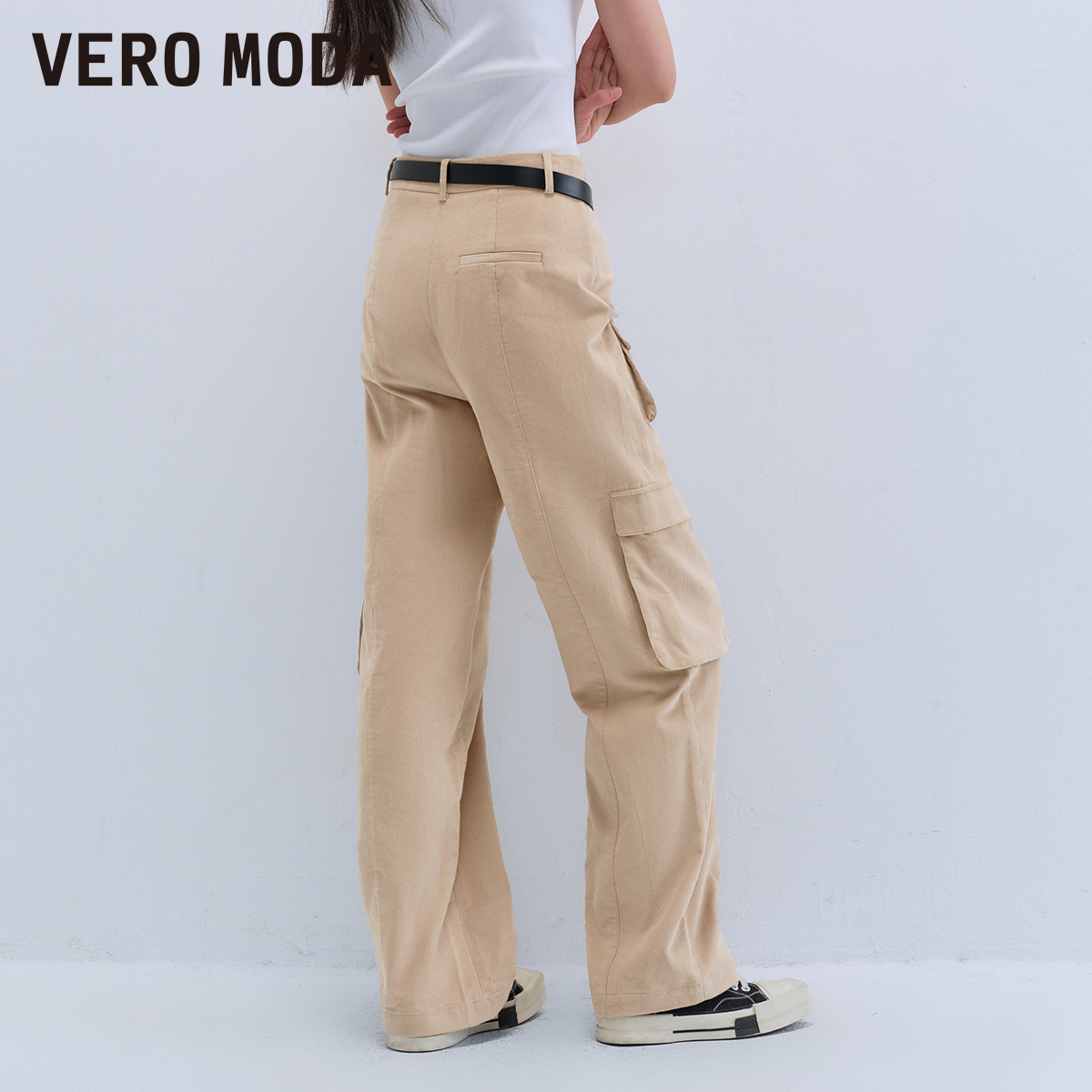 Vero Moda奥莱休闲裤女春秋新款舒适带腰带纯棉中腰工装裤子流行
