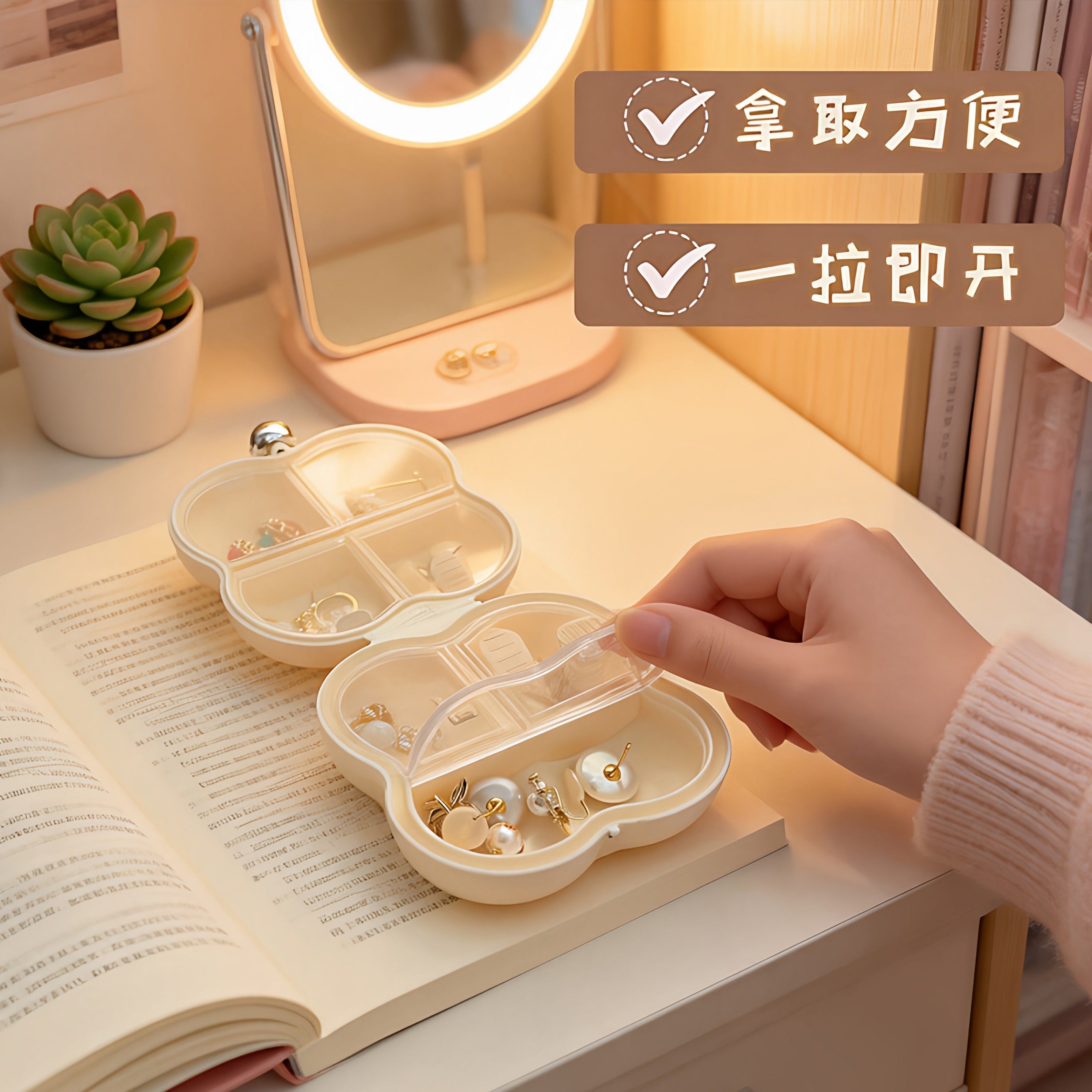 首饰盒耳钉耳环项链收纳盒高档精致小型便携发饰品收纳分格防氧化
