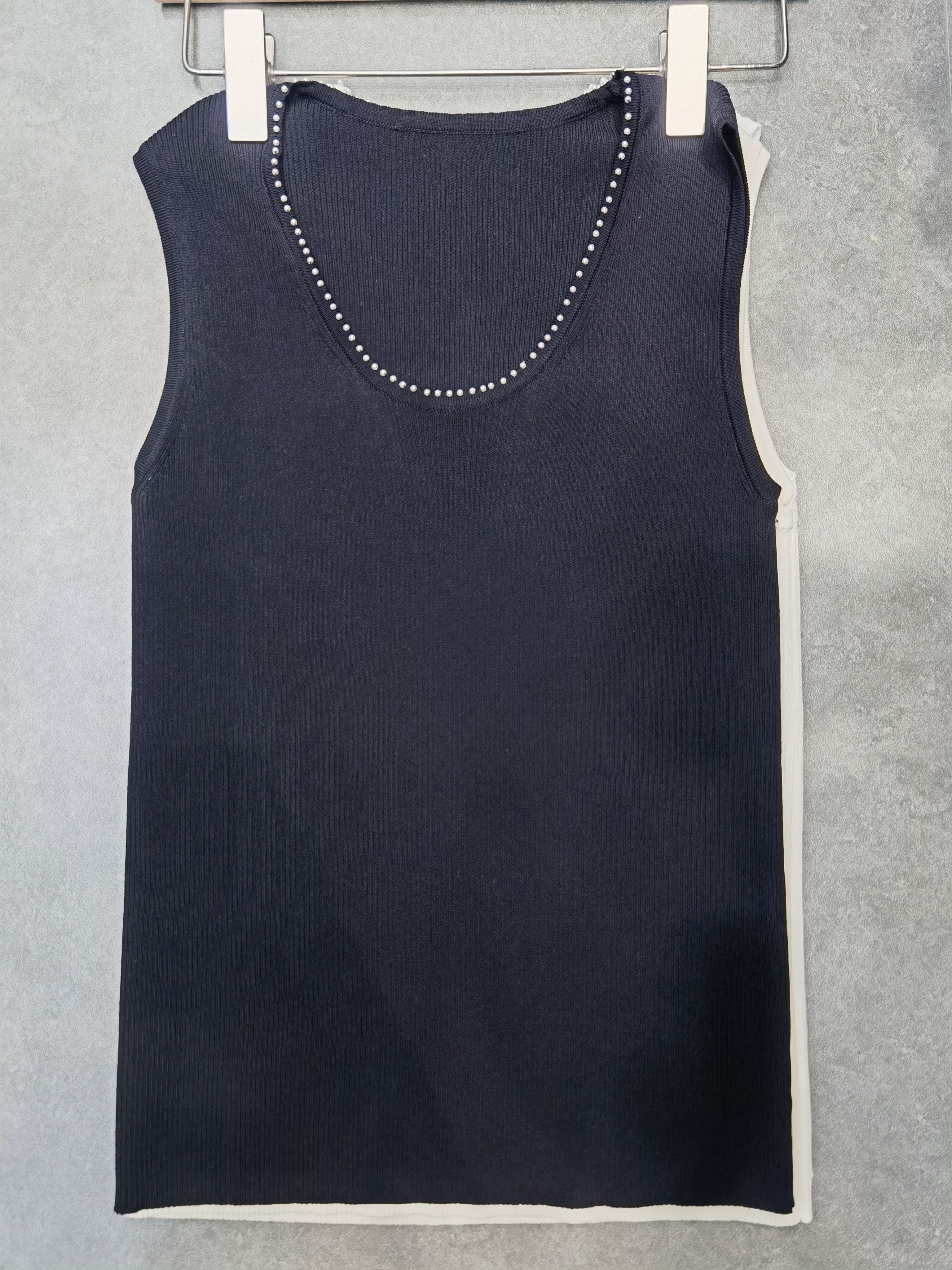 jingmei2025春夏圆领针织背心女修身无袖毛衣打底上衣钉珠吊带衫