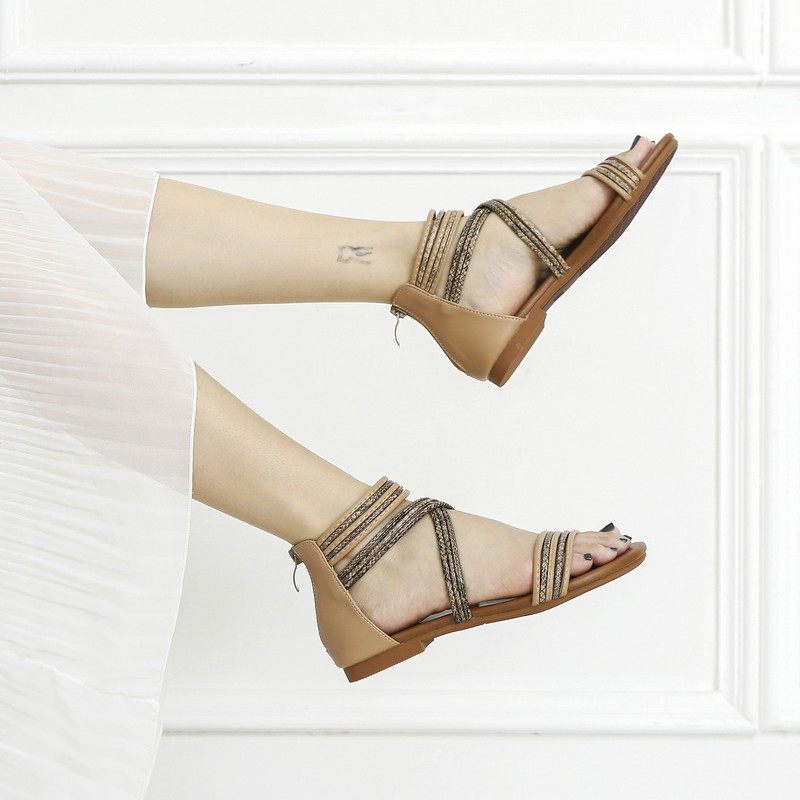 潮牌ins凉鞋女平跟2025夏季新款百搭仙女风平底波西米亚罗马女鞋