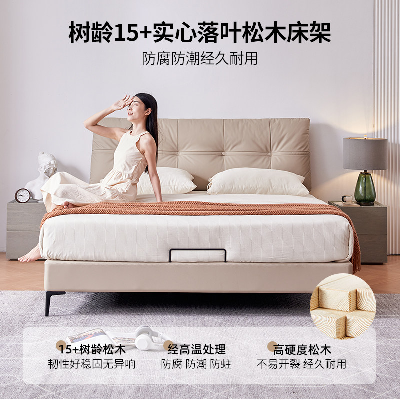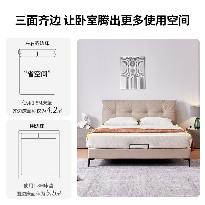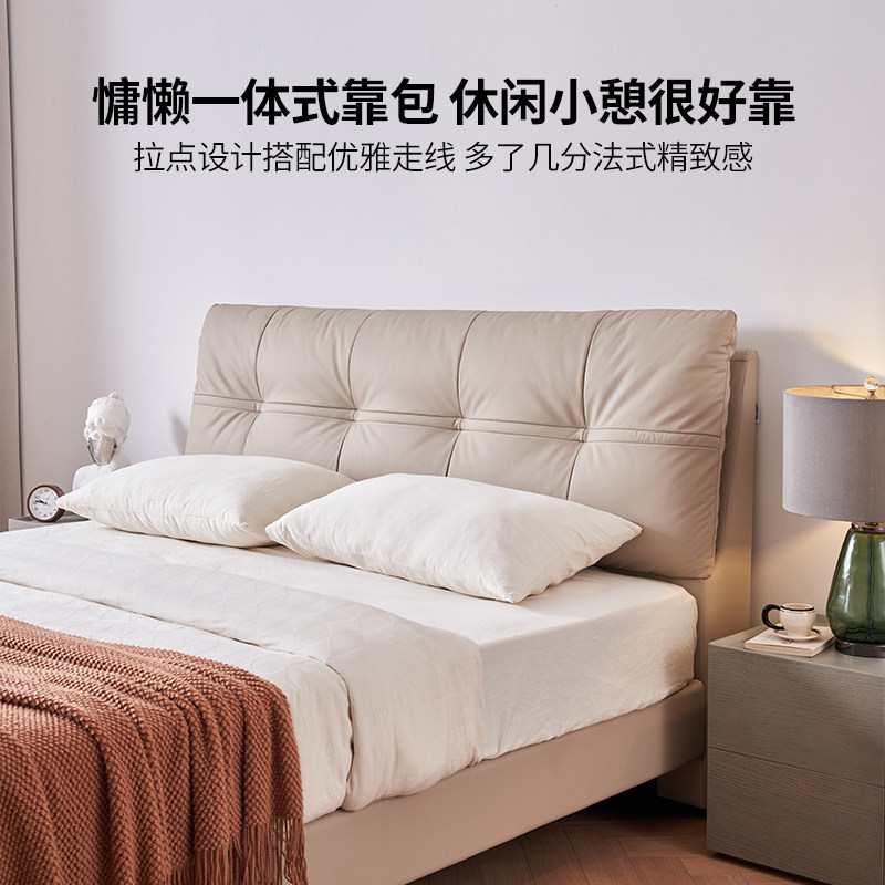 左右真皮床轻奢现代头层牛皮床软包双人床主卧1.8米婚床DZB6032