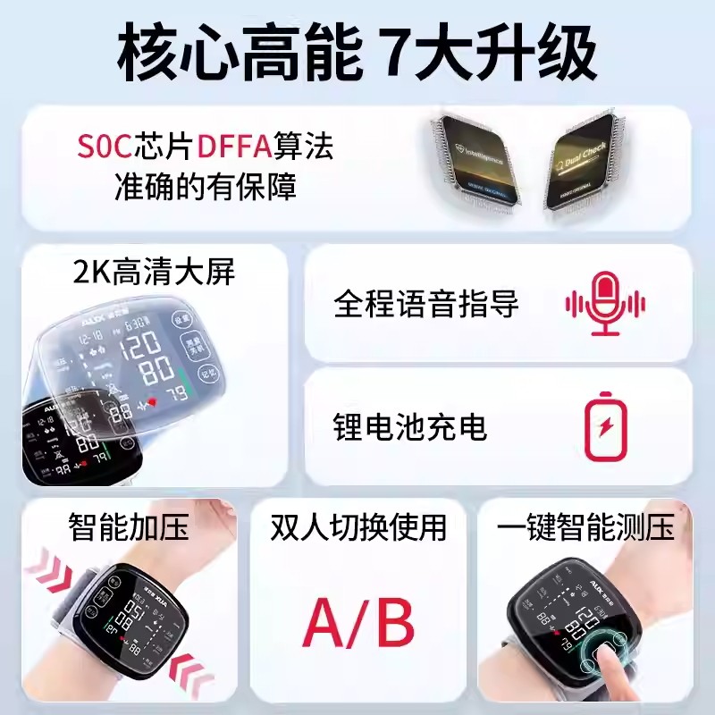 奥克斯电子血压计腕式高精准血压测量仪家用充电全自动血压测压仪